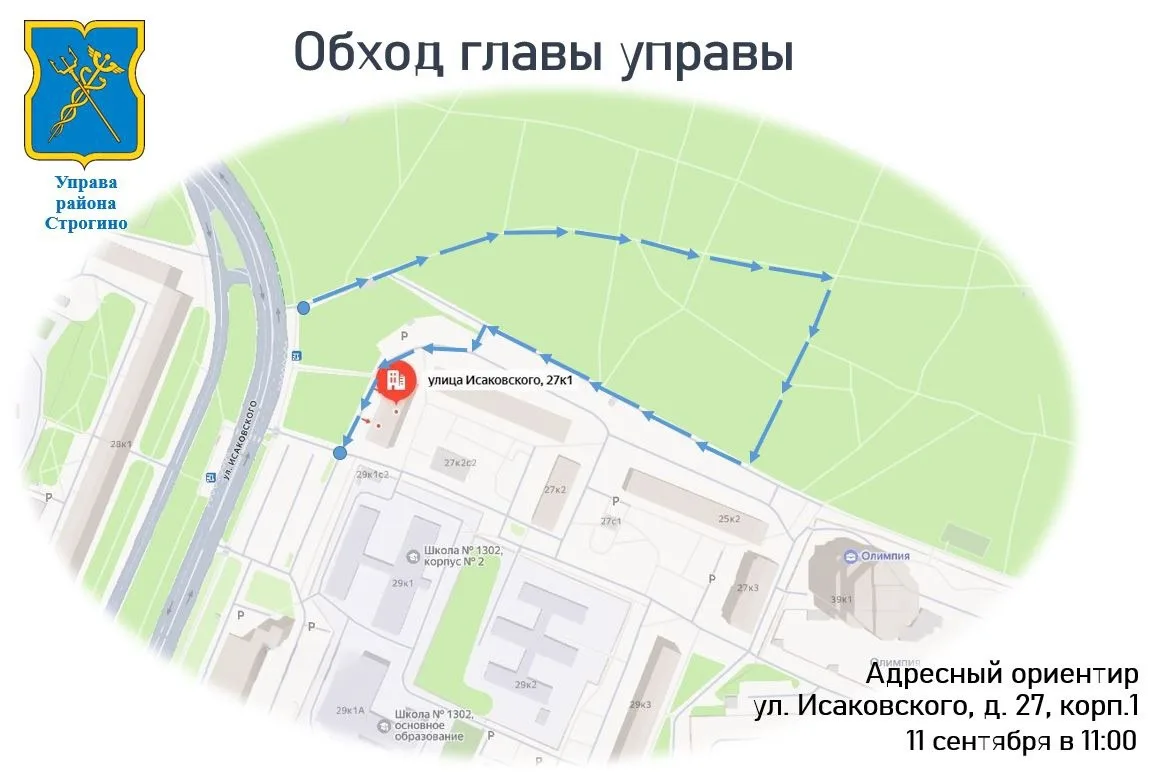 В субботу, 11 октября 2025 года, глава управы проведёт обход территории района