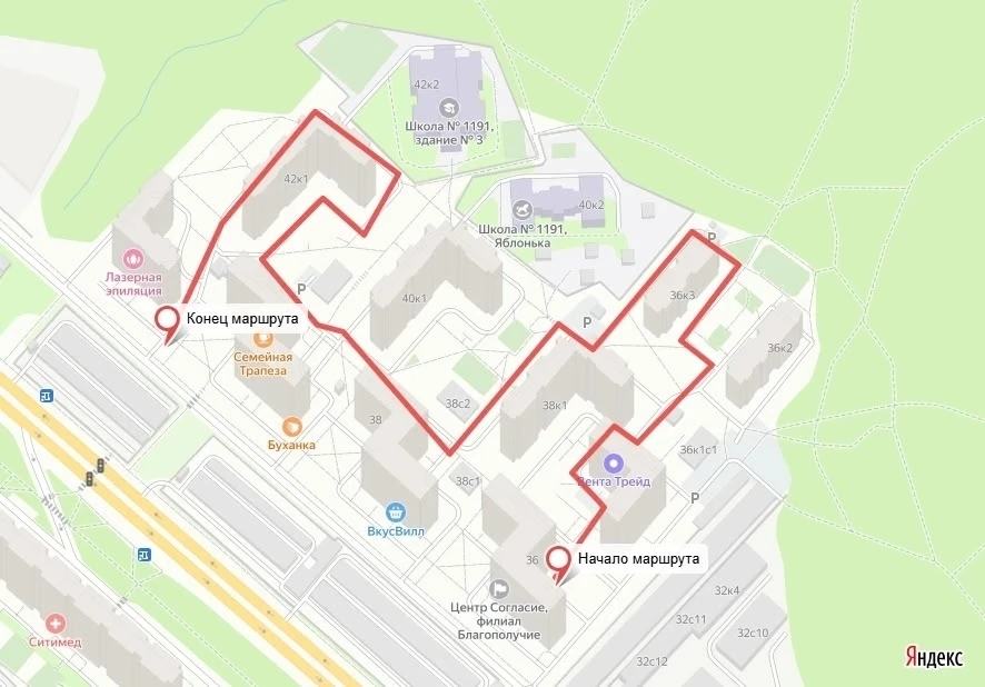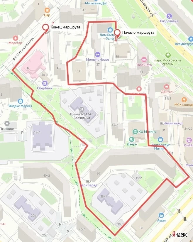 ✅ Проработать вопрос устройства пешеходной дорожки от ул. Митинская д. 57 в сторону станции метро Пятницкое шоссе;