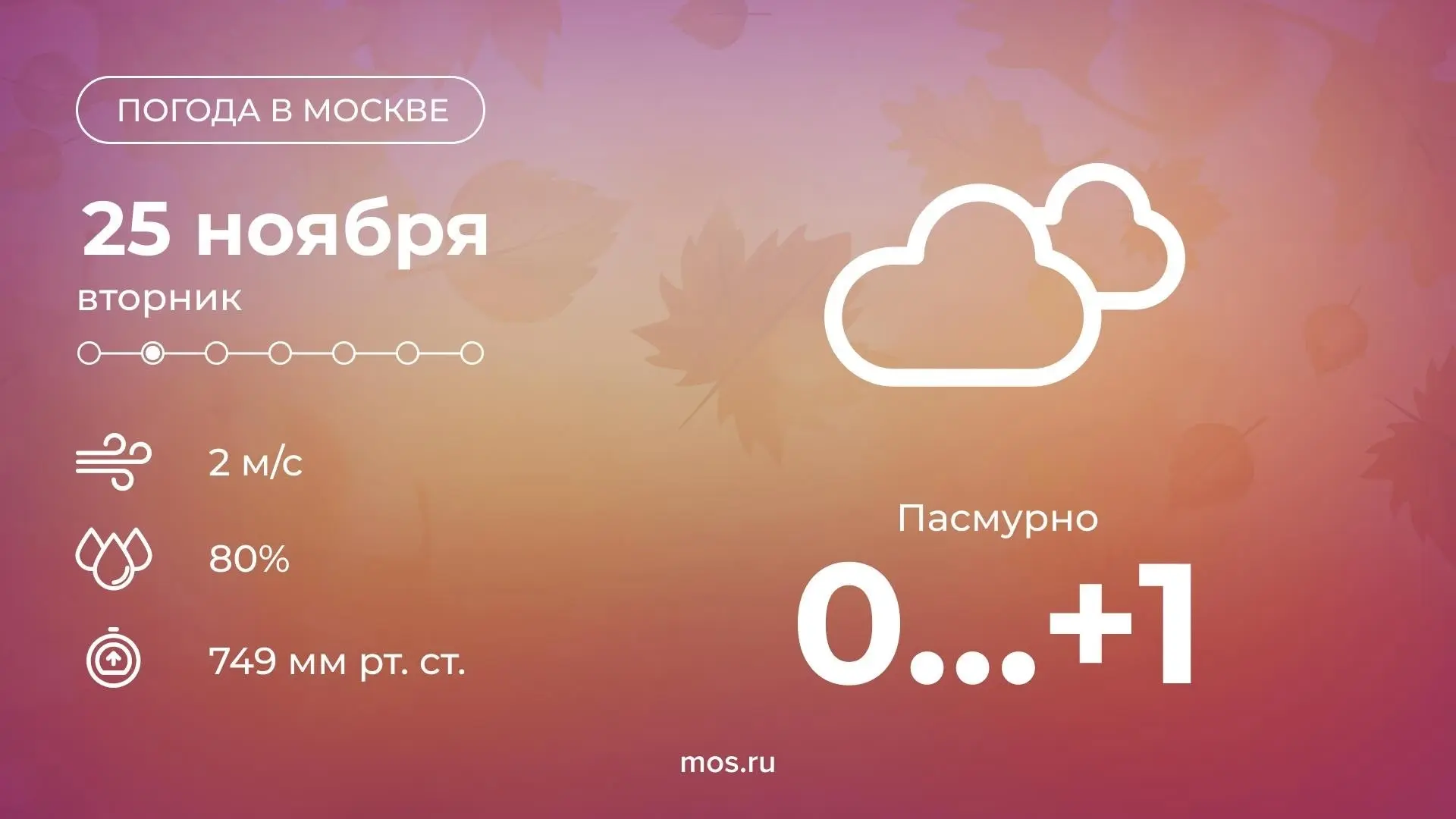 Сегодня в Москве будет пасмурно. Температура воздуха днем поднимется до +1 °С.