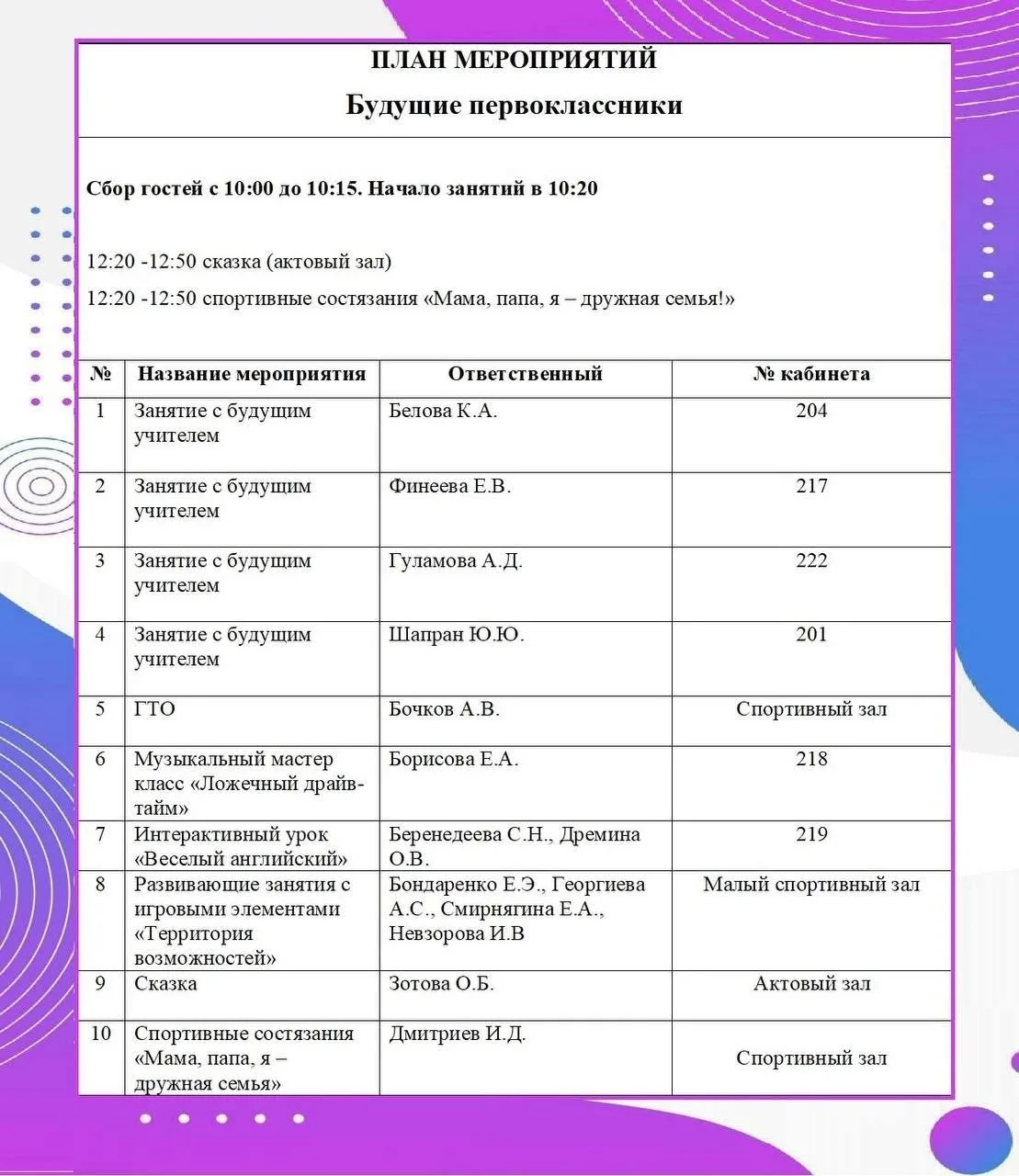 - Родители будущих первоклассников