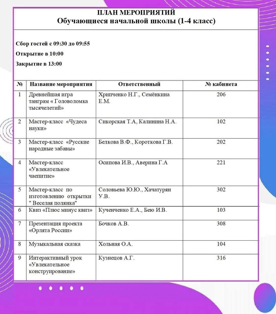 ⏰ с 09:30 до 13:00