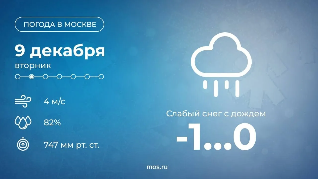 ⛈⛈ Доброе утро! Сегодня в Москве будет облачно, ожидается мокрый снег, местами гололедица. Будьте внимательны и осторожны. Температура воздуха днем поднимется до +2 °С.