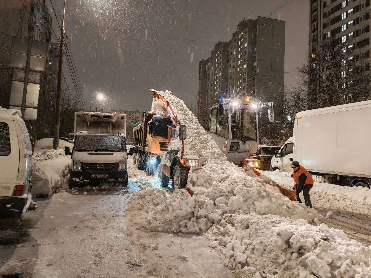 ❄️Коммунальные службы района Митино продолжают работать над ликвидацией последствий снегопада