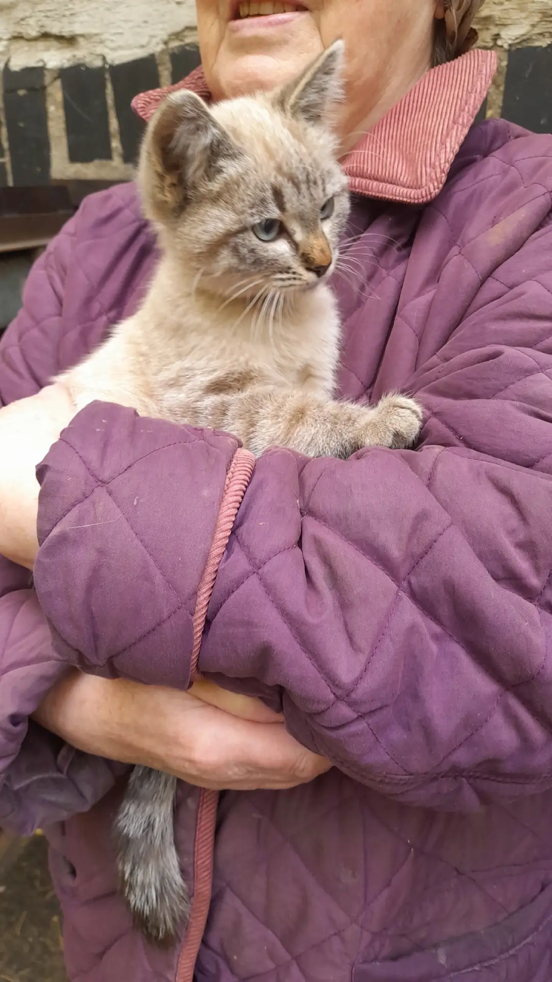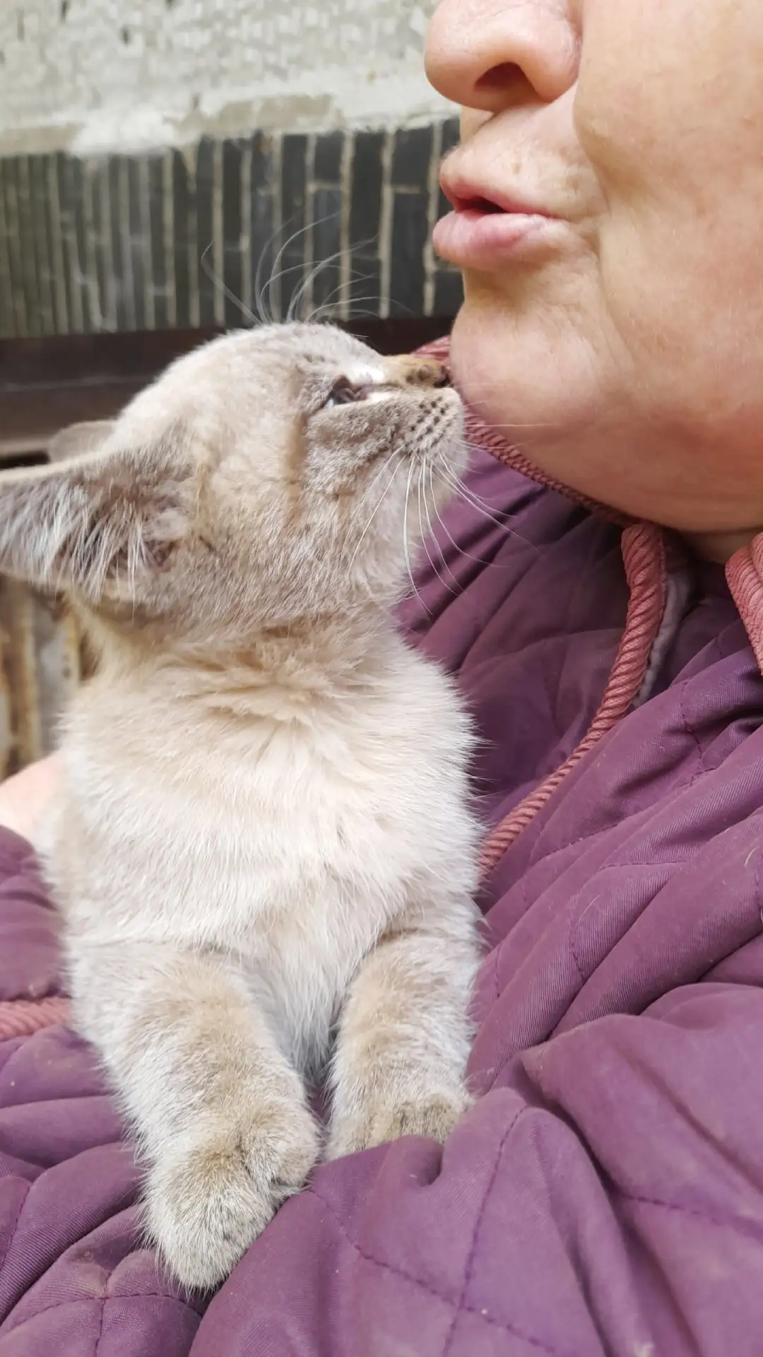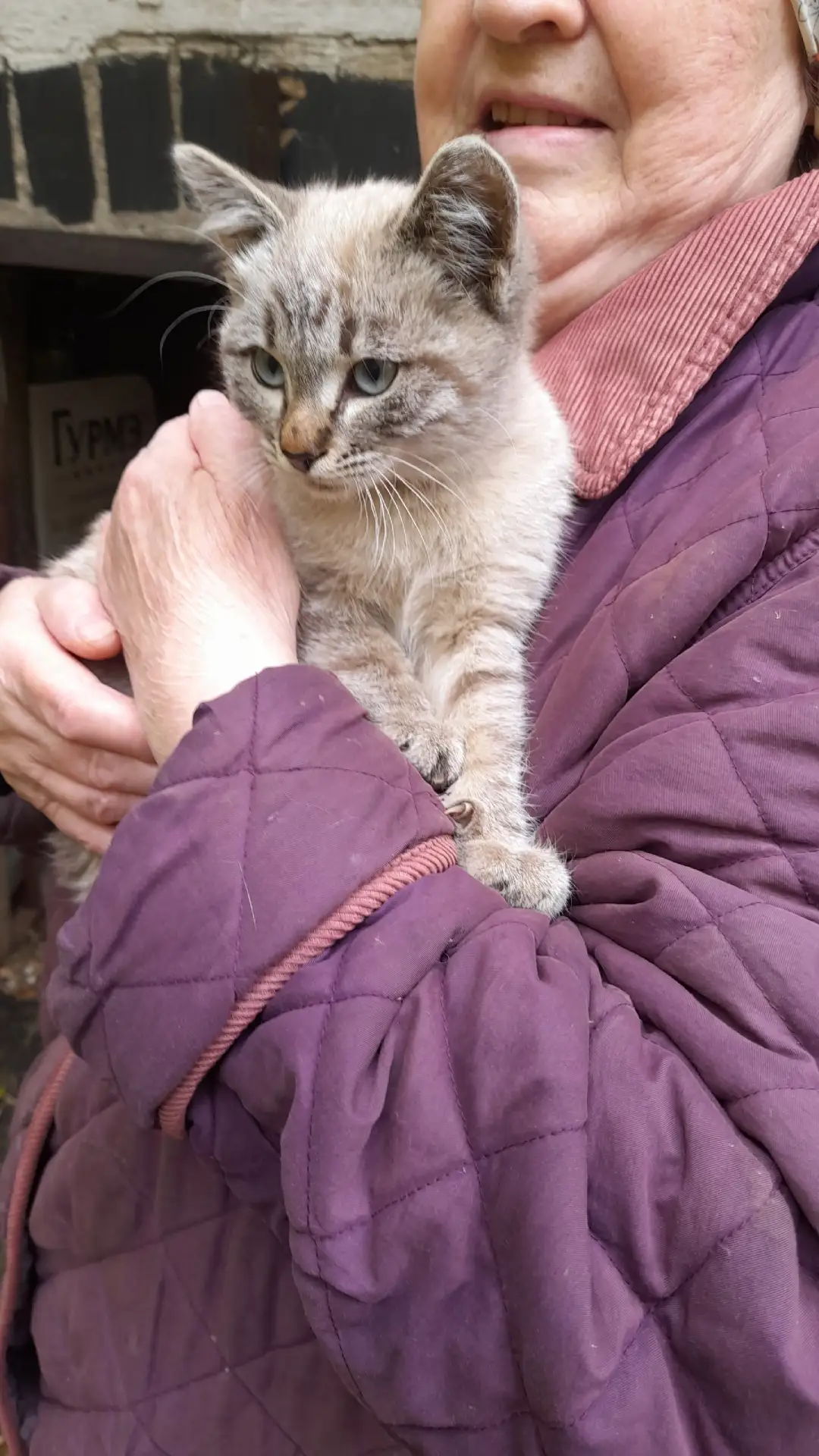 Девочка ласковая, ручная. Кушает всё. Возраст около 2,5 месяцев. Серо - коричневая шёрстка, голубые глазки. Похожа на тайскую кошечку.