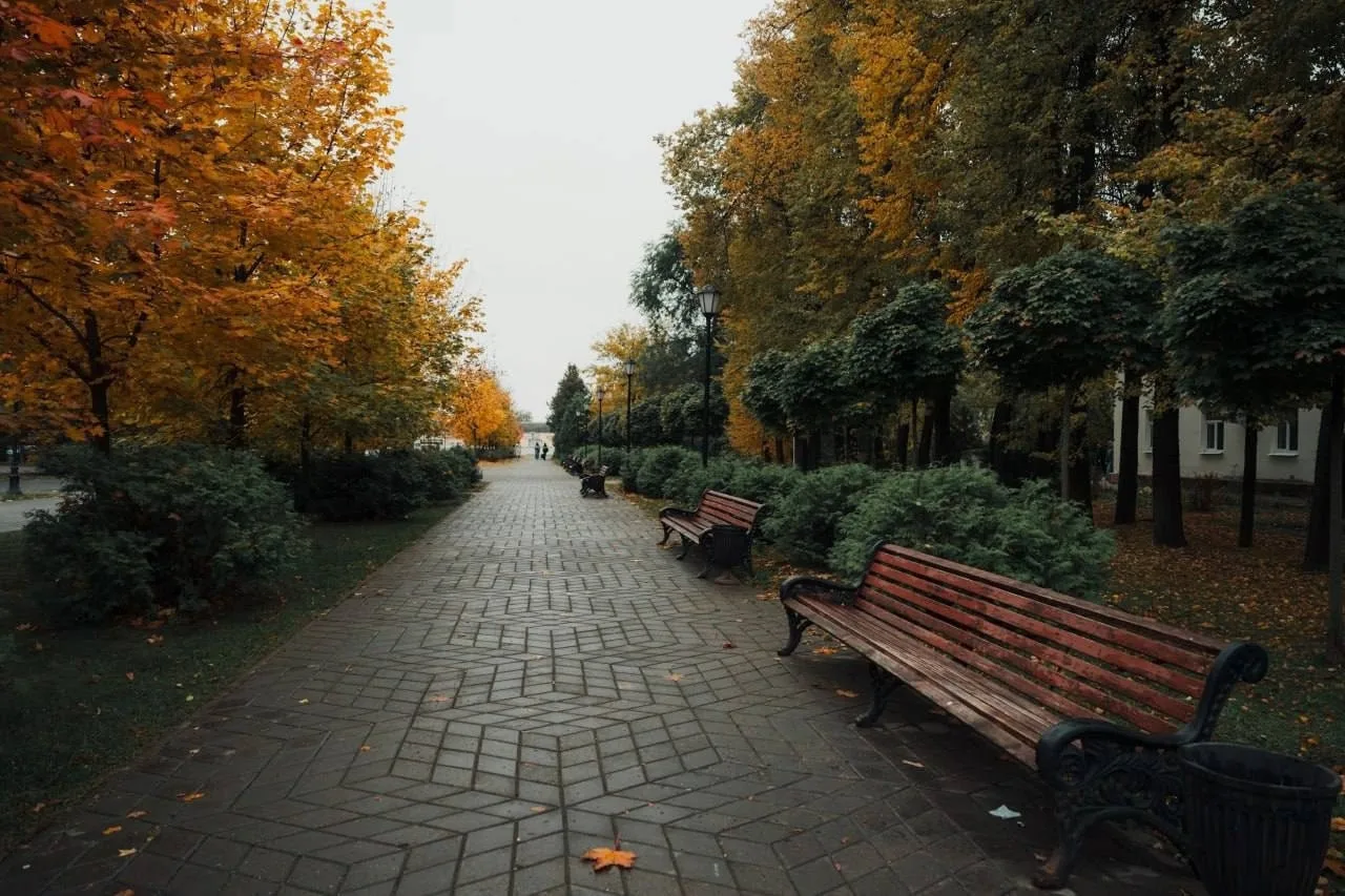 🍂 Продолжаем делиться с вами осенними пейзажами города. Кажется, сама природа приглашает нас на прогулку — золотые деревья, хрустящий под ногами ковёр из листьев... Идеальный день для активного отдыха!