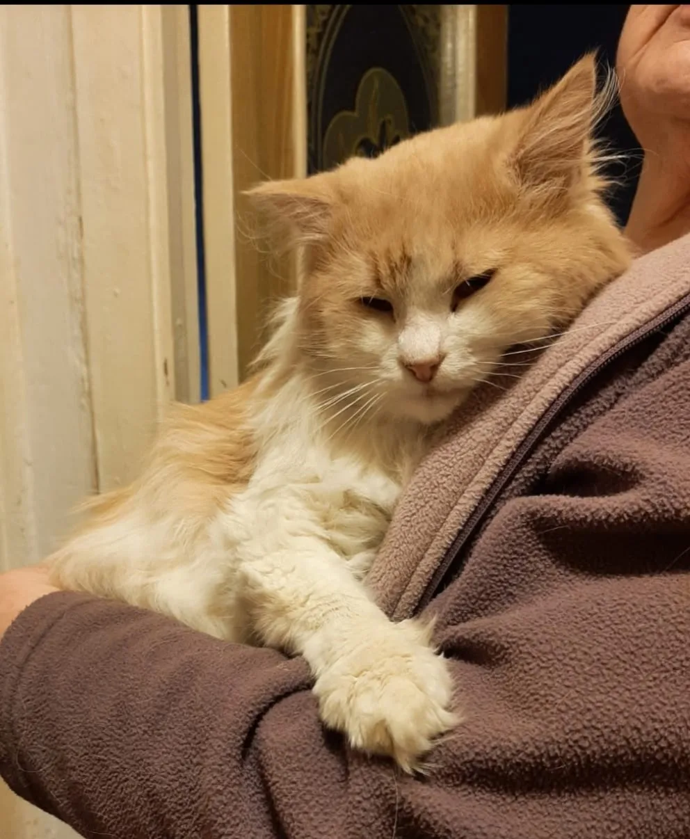 Пушистое, рыжее чудо..приютили в подъезде, недовольные периодически выкидывают...