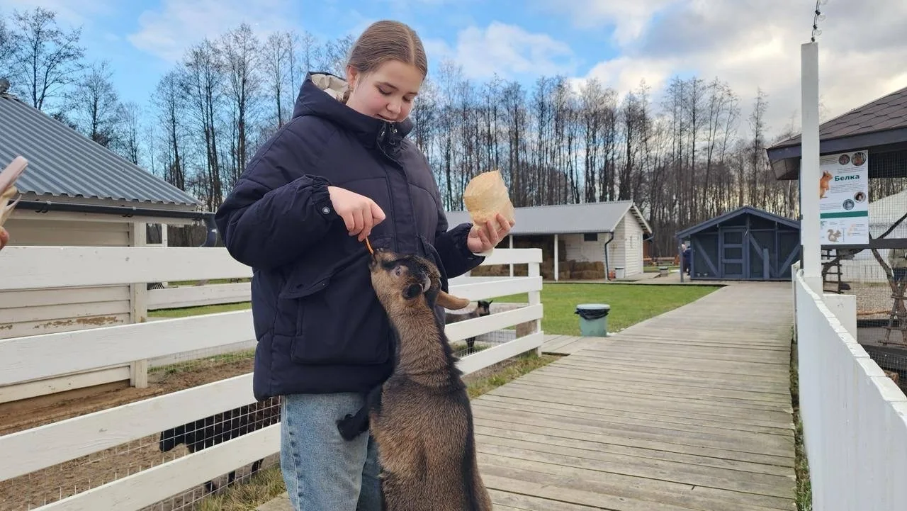 Также ребята с восторгом наблюдали за неторопливыми капибарами и неугомонными козлятами. Пушистые кролики и вовсе сами забрались к детям в поисках лакомства. Мальчишки и девчонки получили уникальную возможность наблюдать за питомцами, гладить и кормить их морковкой.