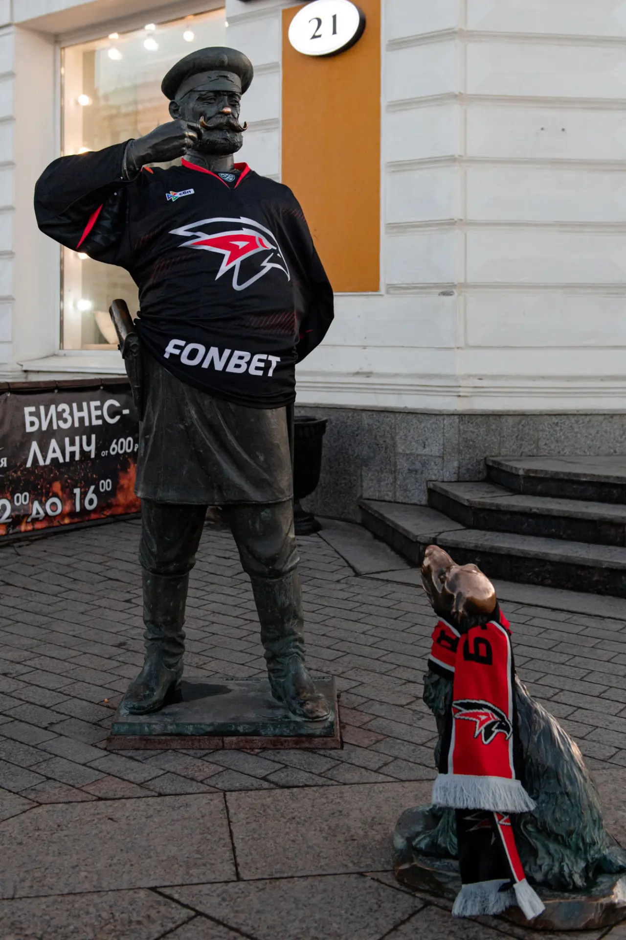 Плей-офф — время, когда весь город становится одной командой. К 1/4 финала Кубка Гагарина даже омские памятники оделись в атрибутику «Авангарда», чтобы поддержать «ястребов» 🦅
