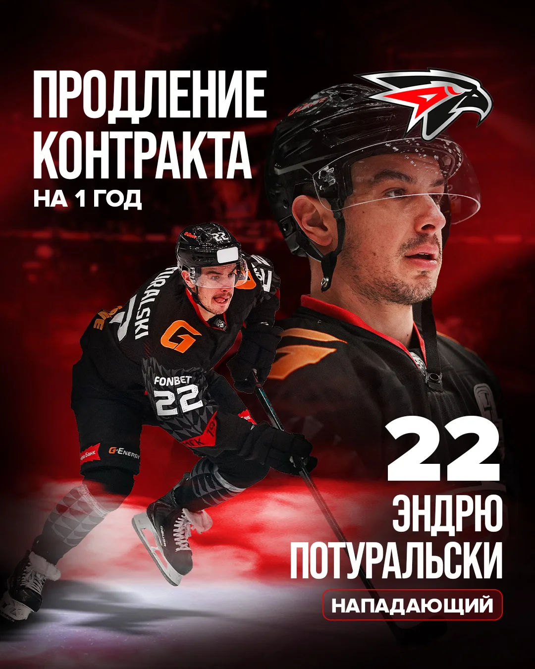 ⚡️ Хоккейный клуб «Авангард» продлил контракт с нападающим Эндрю Потуральски на один сезон.