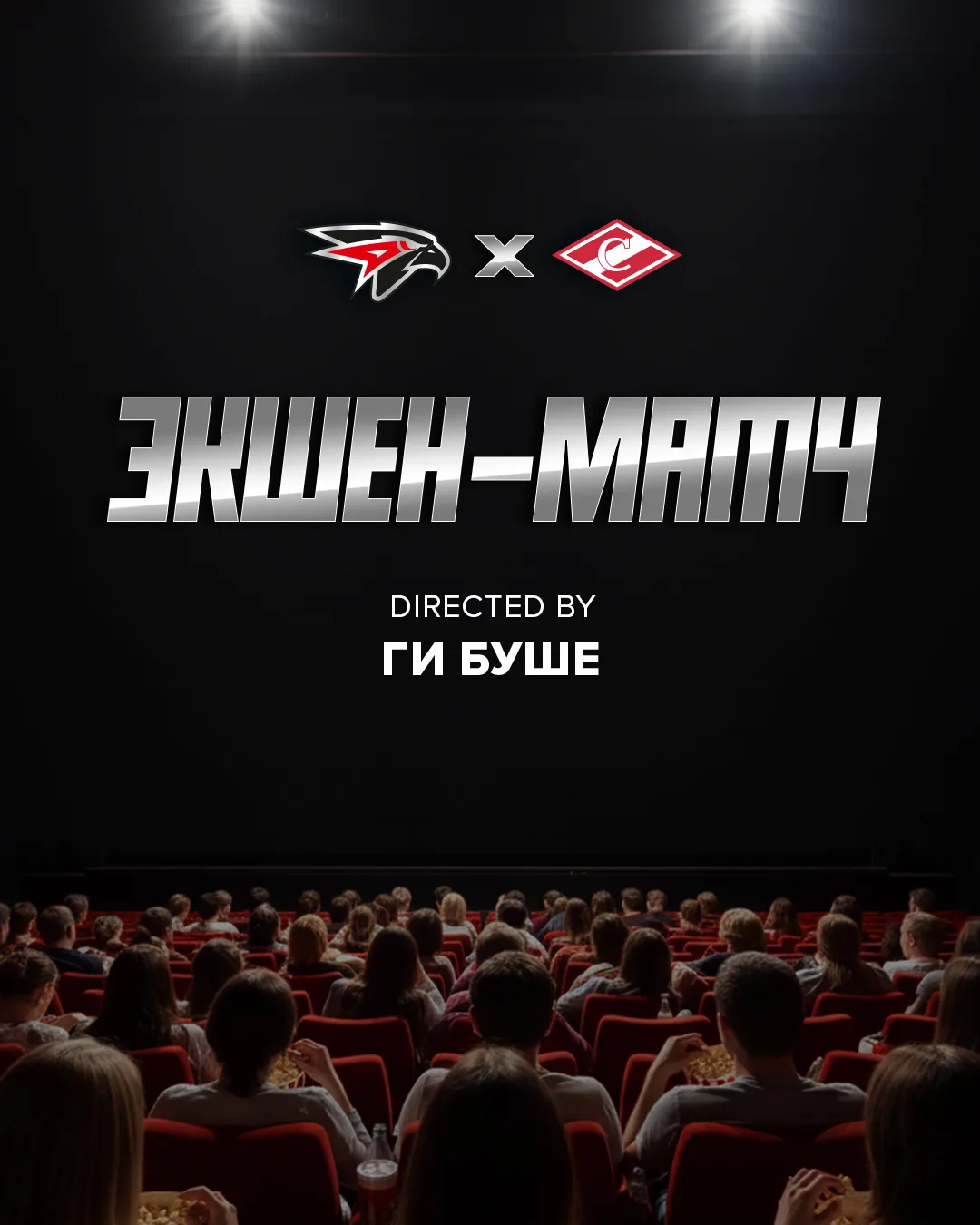 🎬 Режим блокбастера активирован — на лёд против «Спартака» сегодня выйдут настоящие герои, никаких дублёров! Стань частью главной сцены вечера — Экшен-матча, и проверь, выдержишь ли ты этот адреналин. Сеанс начнётся в 17:00.