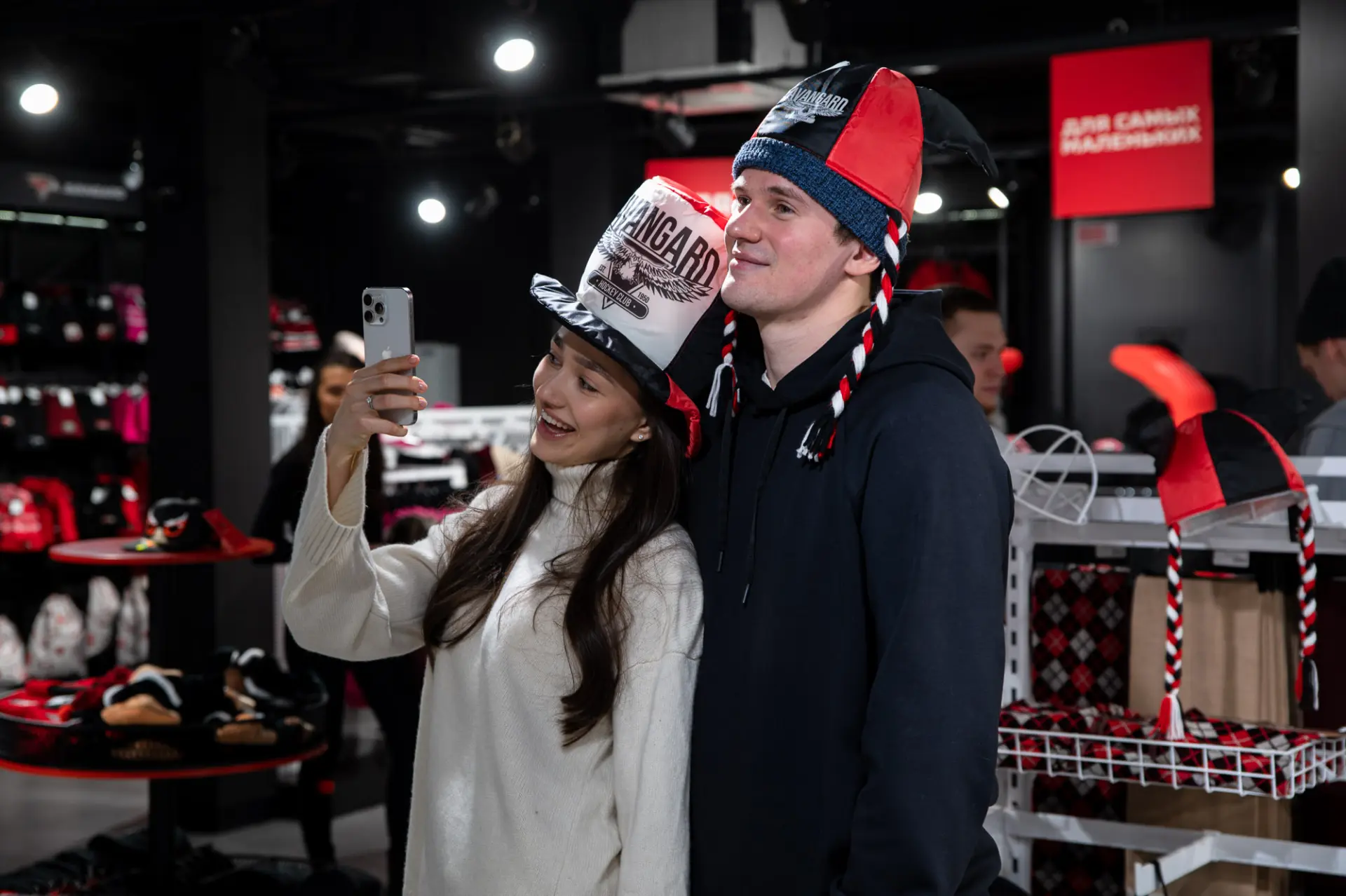Несём вам милейшую предпраздничную историю, которую наблюдали сами: во время семейного дня игроки и их семьи заглянули в большой магазин на Арене, чтобы сделать своим близким подарки 🫶 Семья Шарипзяновых в том числе выбирала шапки детям, Даниар определился сразу, а вот Рэмиллия сомневалась: ⚫️ чёрная или 🔴 красная?