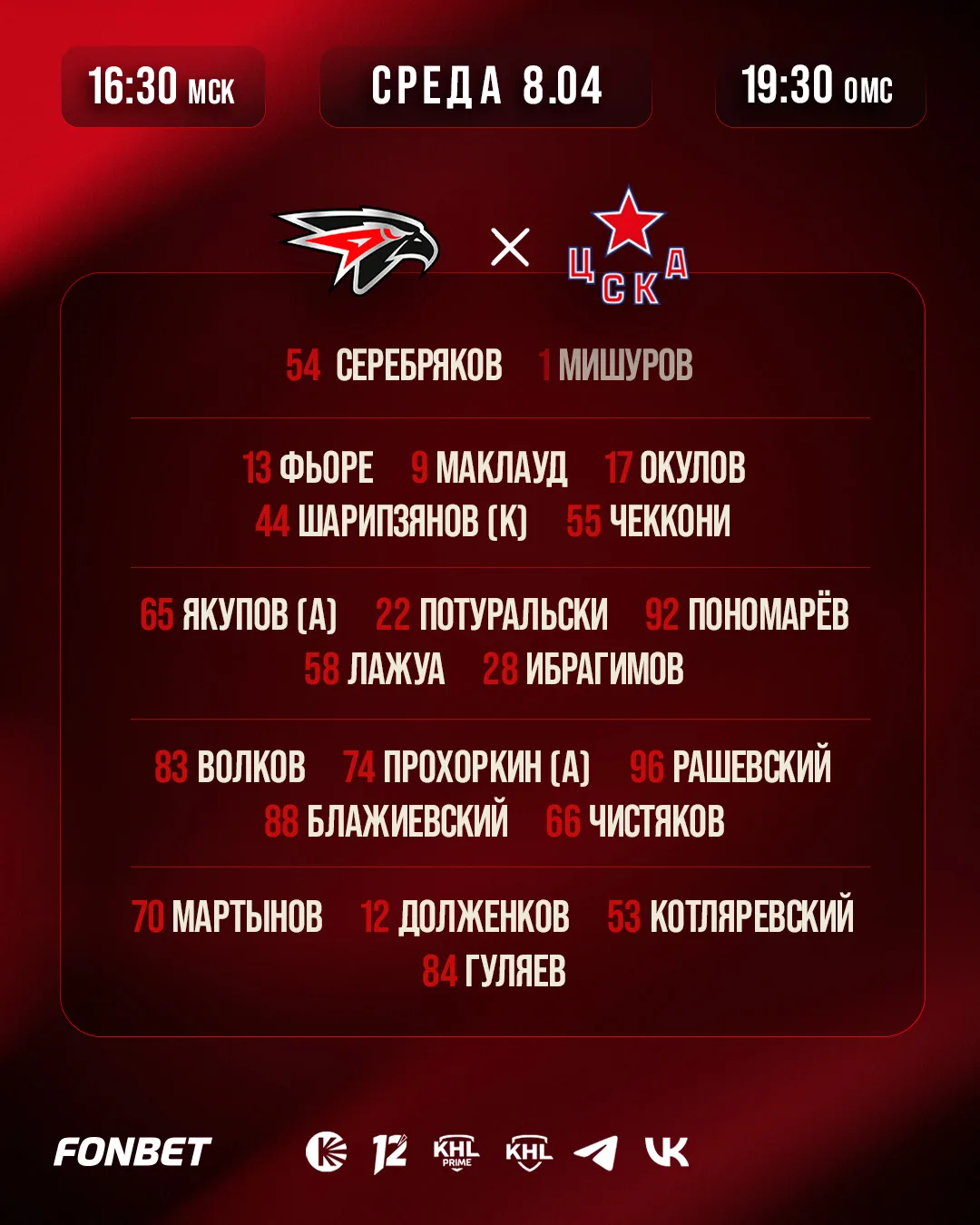 Лёд — наша территория, а победа — наша миссия. Состав Команды «А» на первую игру против ЦСКА 1/4 плей-офф!