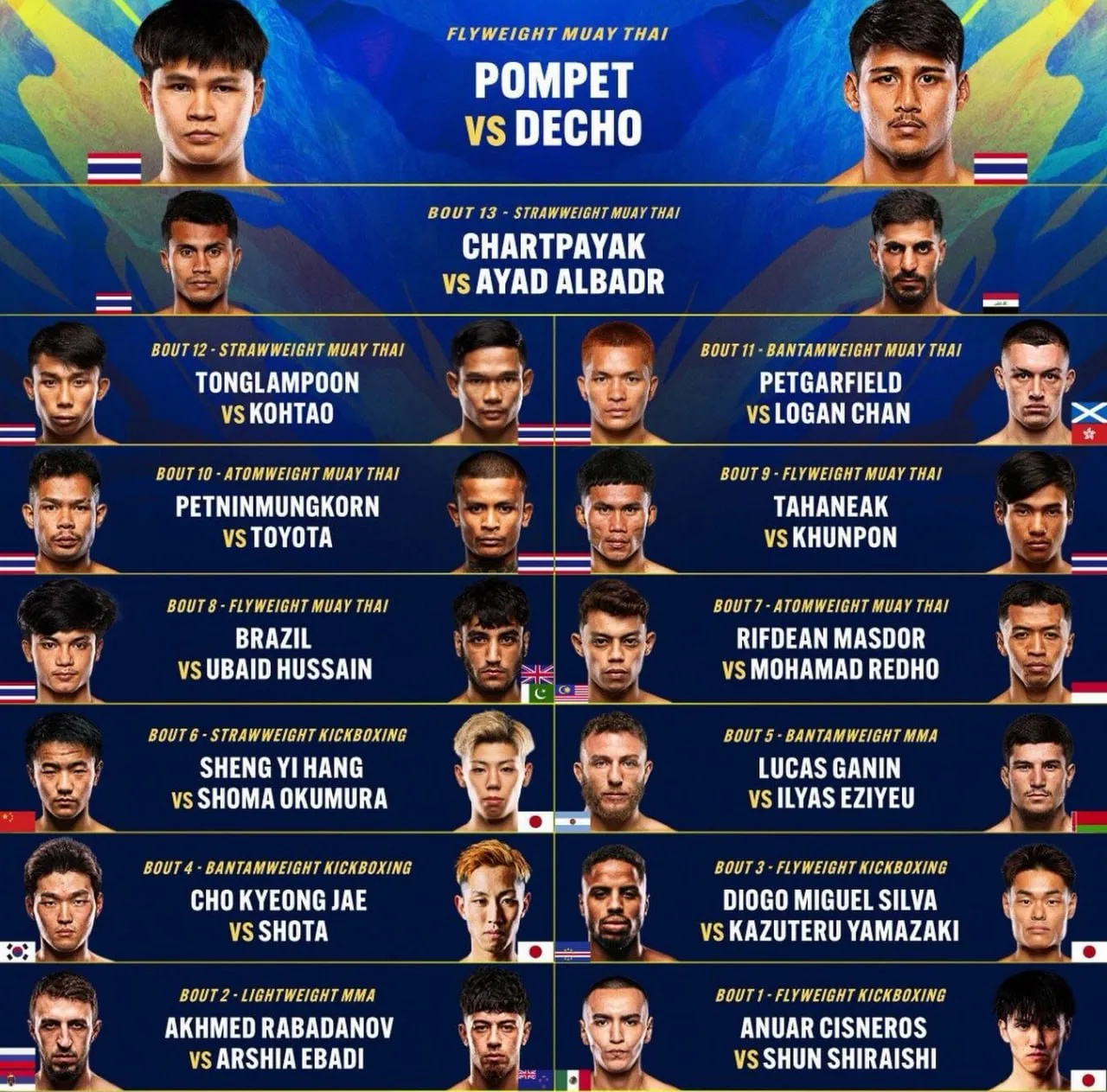 🔥🔥🔥 Официально анонсированные бои на турнир ONE Fight Night 40: