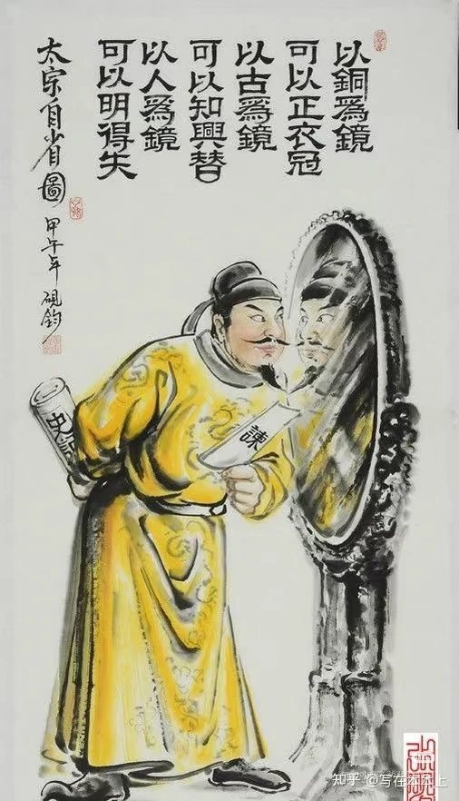 "Используя в качестве зеркала бронзу, легко привести в порядок свою внешность; используя в качестве зеркала историю, мы понимаем причины укрепления могущества и причины падения династий. Когда же мы используем в качестве зеркала других людей, мы можем оценить собственные достоинства и недостатки.