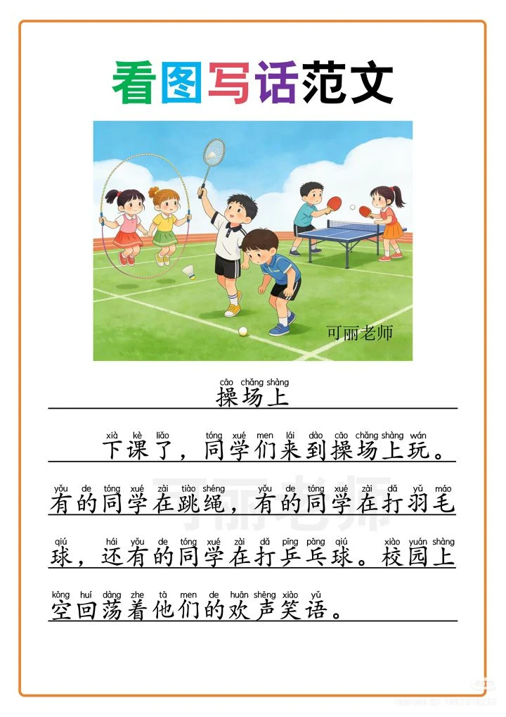Некоторые ученики прыгают через скакалку, некоторые играют в бадминтон, а другие играют в настольный теннис. Над школьным двором разносится их радостный смех и веселые голоса.