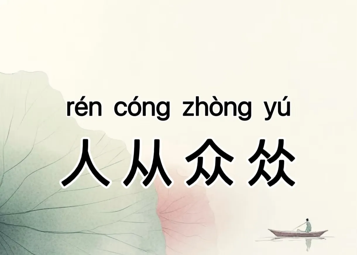 Иероглиф 众 (zhòng) состоит из трех 人, что означает «толпа» или «множество людей».