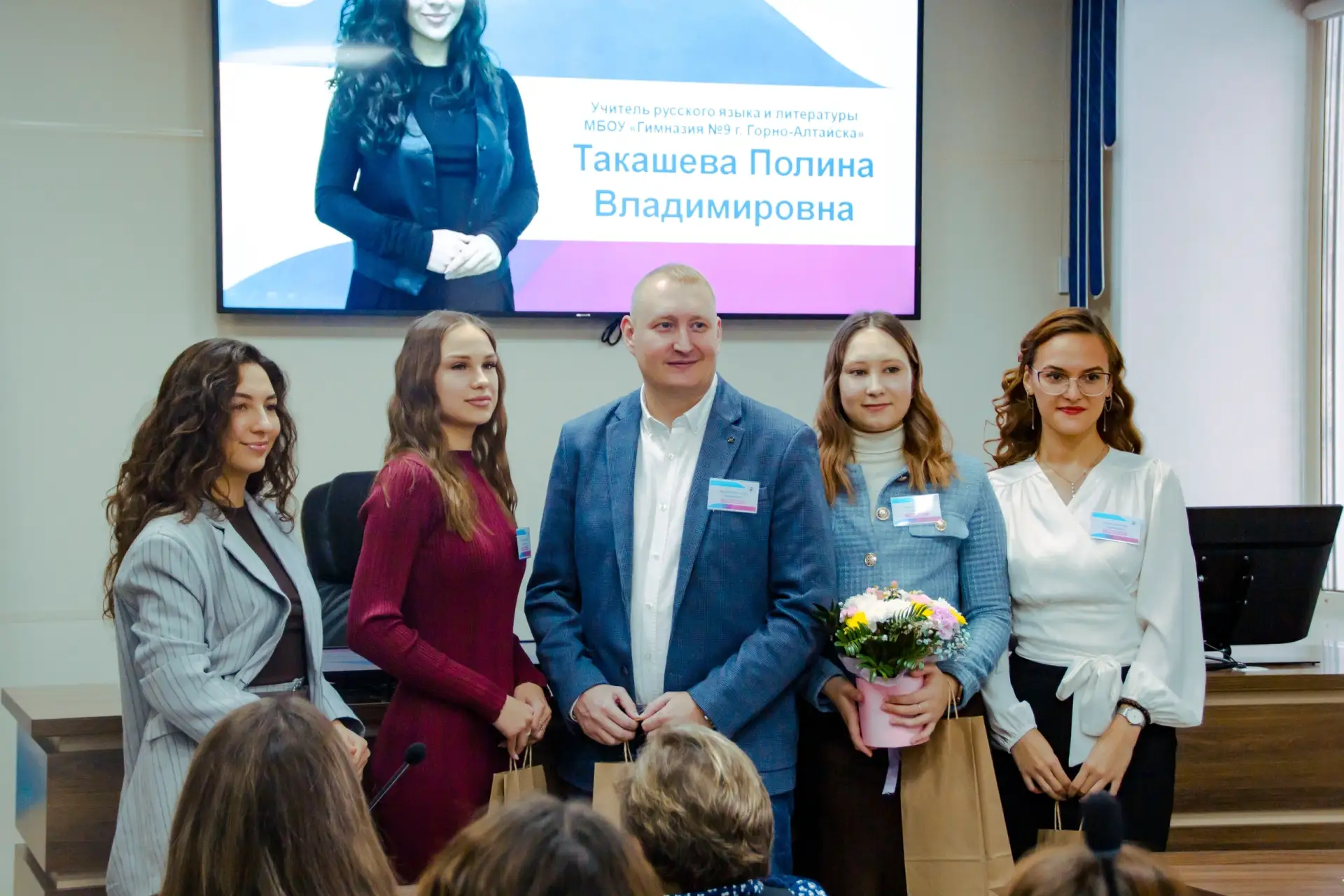 Участников поприветствовали замглавы Администрации города Евгений Сюремеев, начальник Управления образования города Елена Комиссарова, победитель конкурса 2024 года, учитель математики школы №8, Людмила Чертолыс.