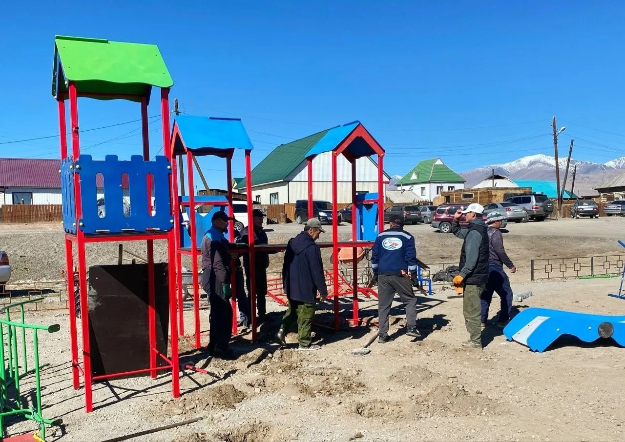 🌟🏗️ Новая детская площадка в Кош-Агаче на улице Угрюмовой! 🎉👶
