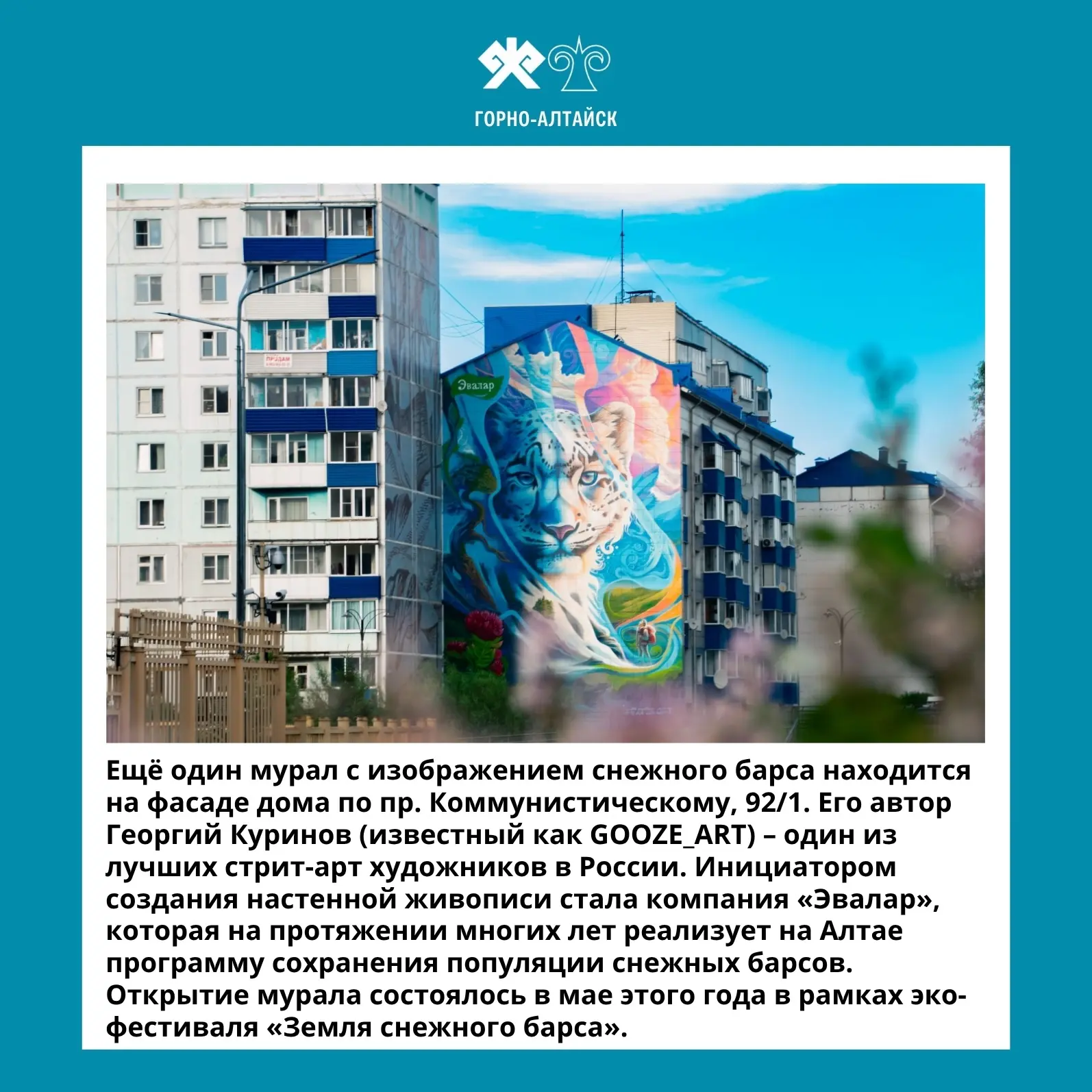 В последние годы украшением Горно-Алтайска стали муралы - художественные изображения на зданиях. Теперь их семь.