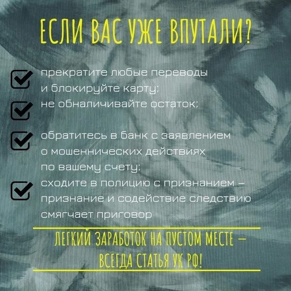🔺 Ни при каких обстоятельствах не совершайте противоправные действия, даже если вам угрожают уголовным преследованием, утверждают, что это «специальная операция», обещают вознаграждение или снятие обвинений.