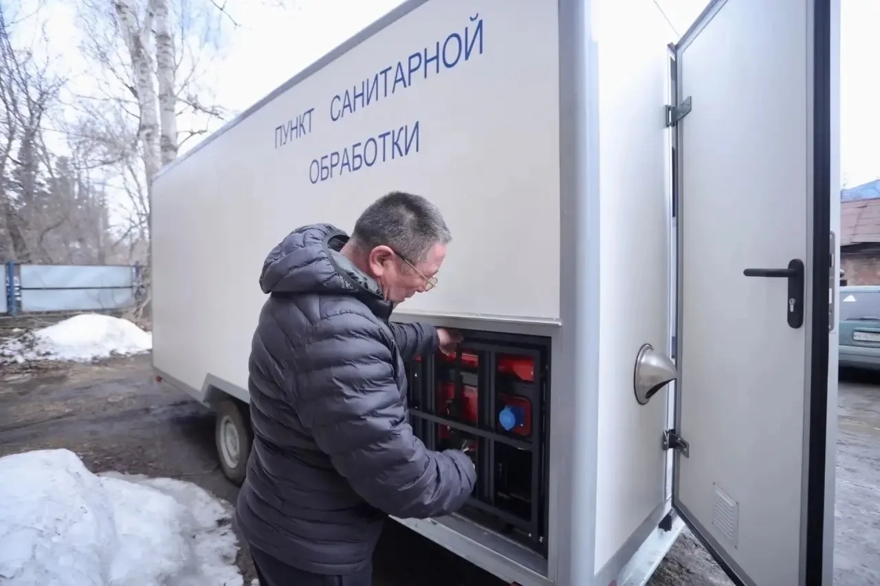Это передвижной пункт для санобработки персонала в районах ликвидации последствий болезни сельхозживотных, в том числе во время дезинфекции и обеззараживания хозяйств и предприятий.