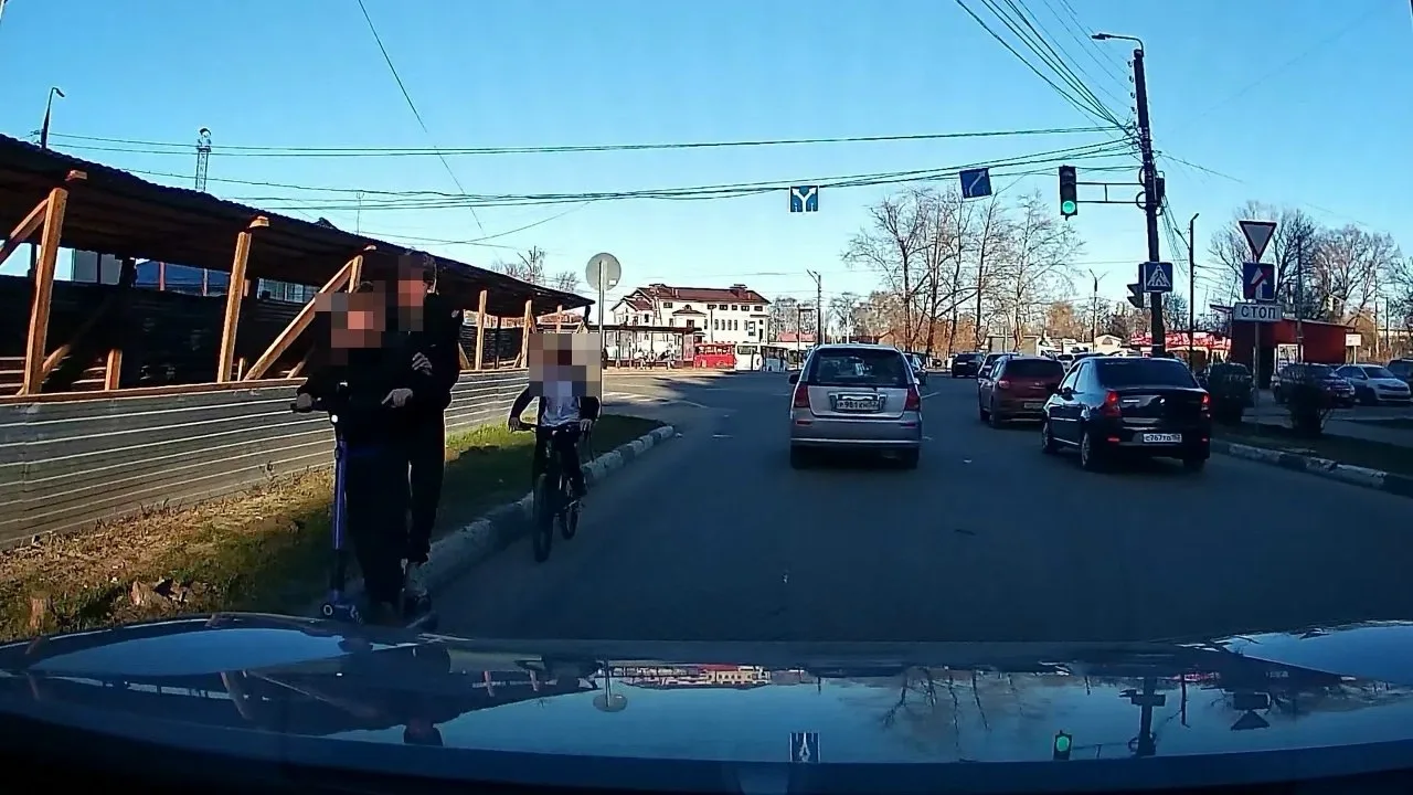 У кого то есть запасные дети. Двое несовершеннолетних на самокате, ещё и против движения.