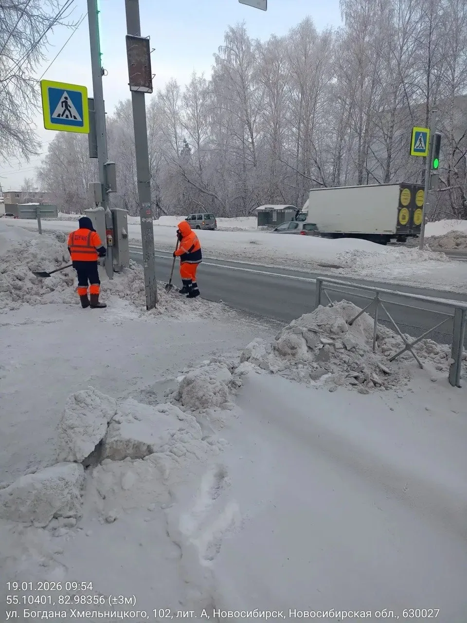 🌨В настоящее время по улице Богдана Хмельницкого очищены тротуры, расчищены парковочные карманы, очищена от снега и наледи остановка общественного транспорта "Универмаг Калининский".