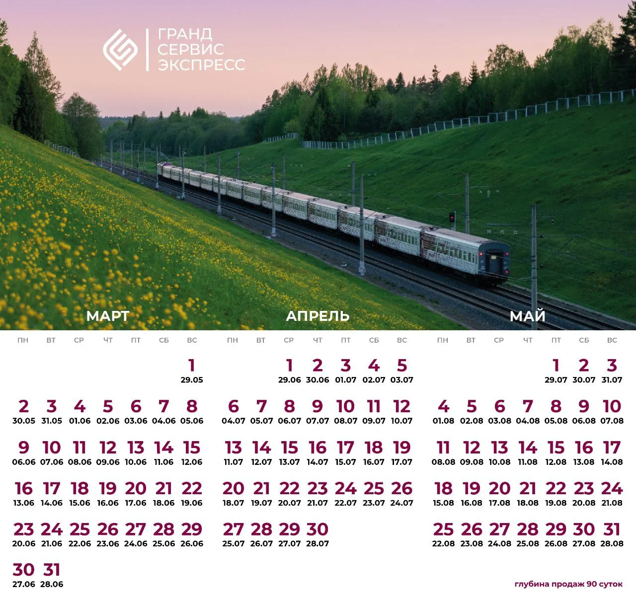 Как правило, продажи билетов на поезда открываются за 90 суток.