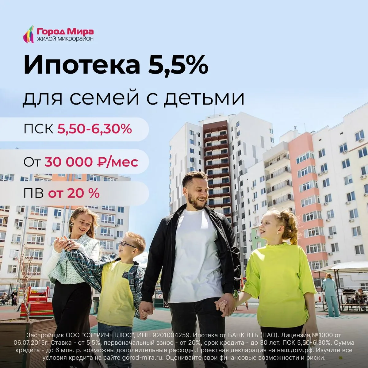 В «Городе Мира» вы можете купить жильё в ипотеку от 5,5% по выгодным условиям: