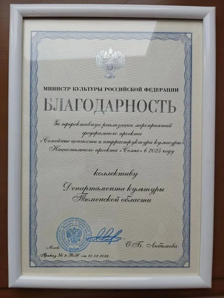 Высокой оценки удостоена эффективная реализация в Тюменской области мероприятий федерального проекта "Семейные ценности и инфраструктура культуры", входящего в состав национального проекта "Семья", в 2025 году.