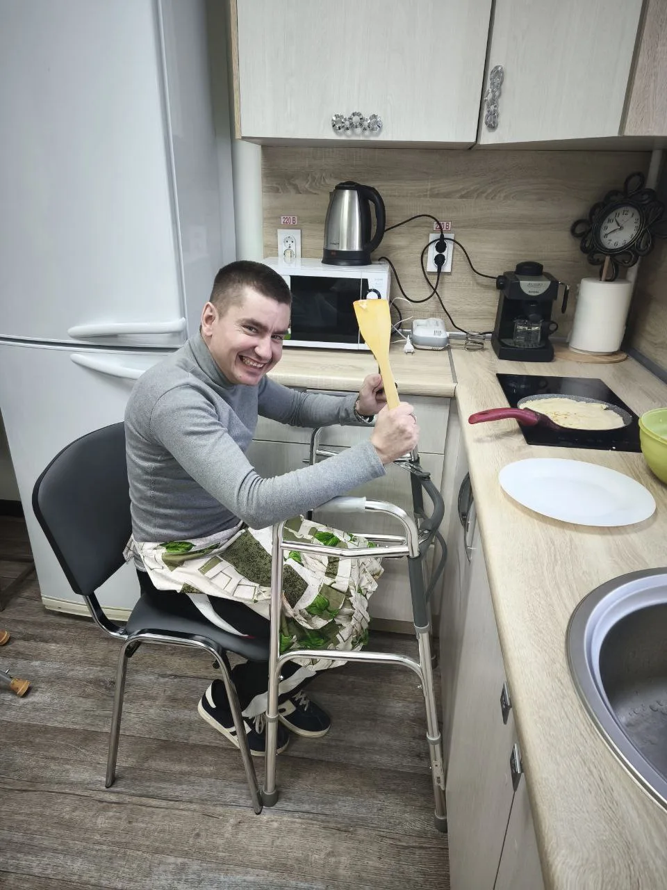 Кабинет эрготерапии в учреждении оборудован как квартира, имитирующая обычную домашнюю обстановку. Есть электрическая плита и сковородка для блинов.