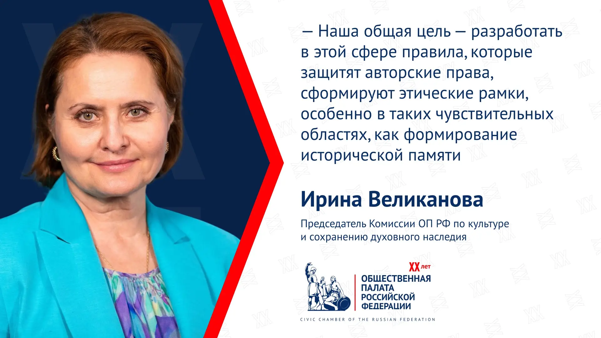 Член ОП РФ подчеркнула актуальность темы и необходимость выработки сбалансированных подходов к регулированию ИИ в креативной сфере:
