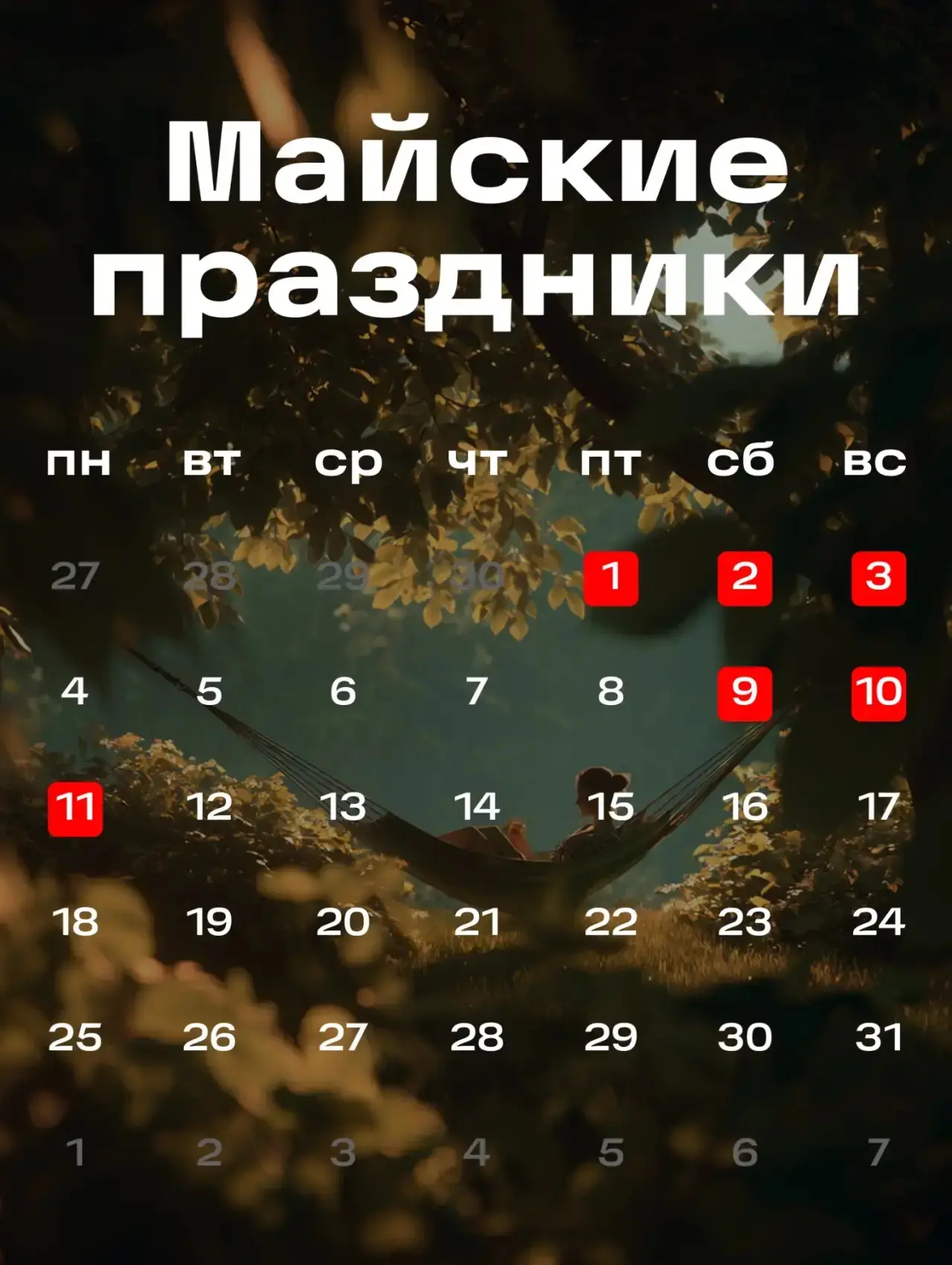 Май станет месяцем отдыха — у нас будет всего лишь 19 рабочих дней.