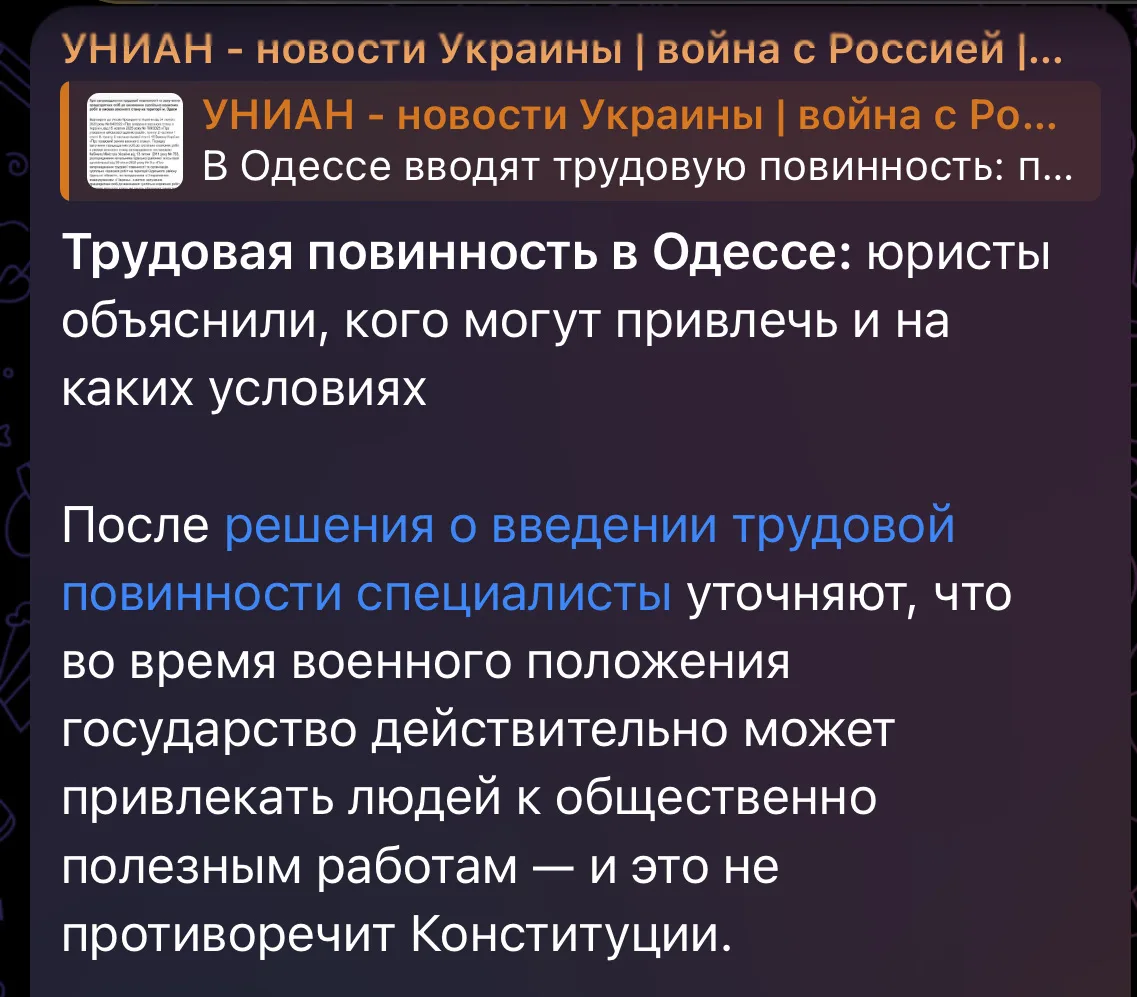 Под шумок, на фоне украинской перемоги над Ираном, о которой весь день вещает моноэфир, во временно оккупированной бандеровцами Одессе кастрюли вводят трудовую повинность. И пытаются объяснить посполитым, что это Конституции никак не противоречит.