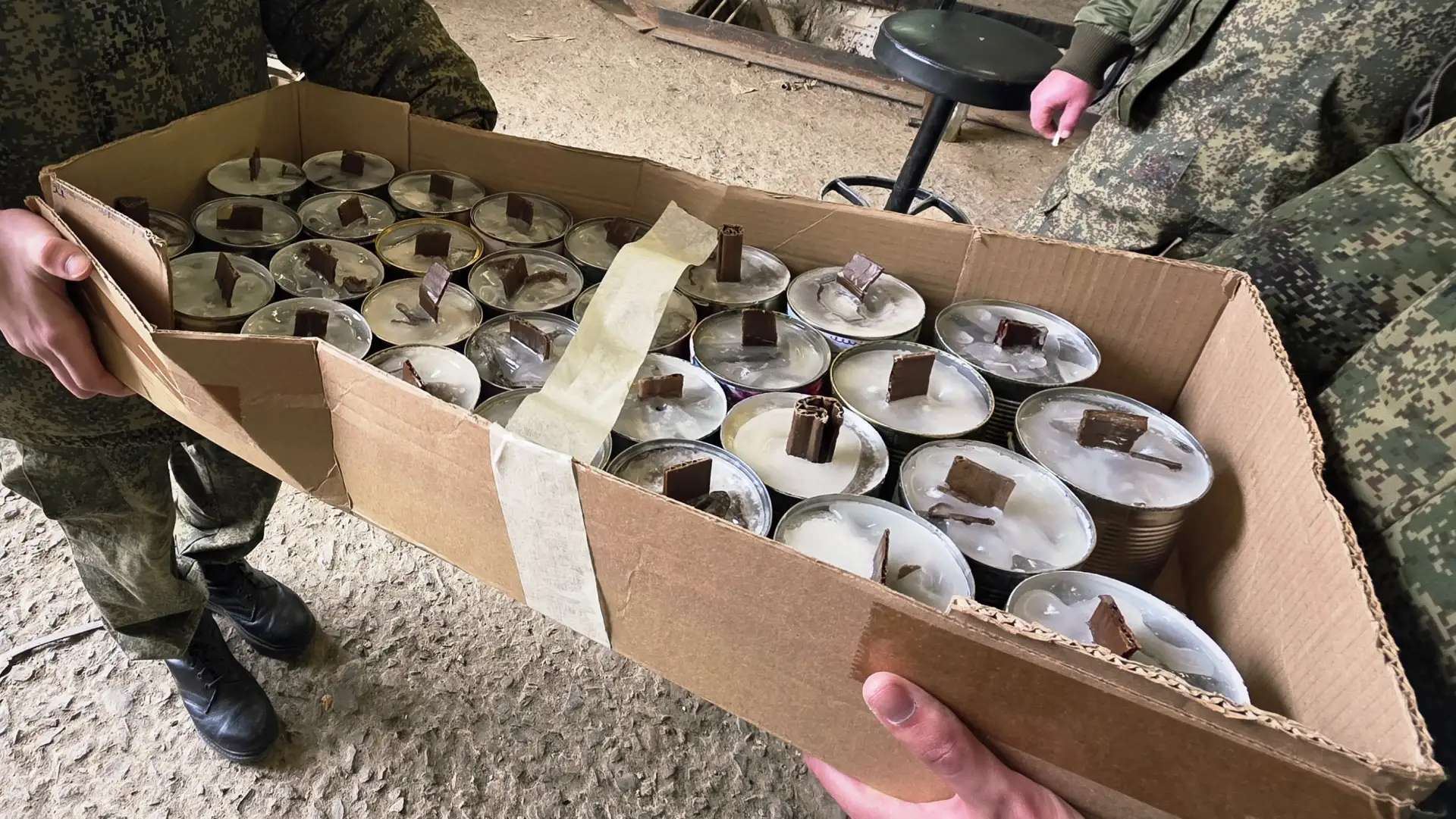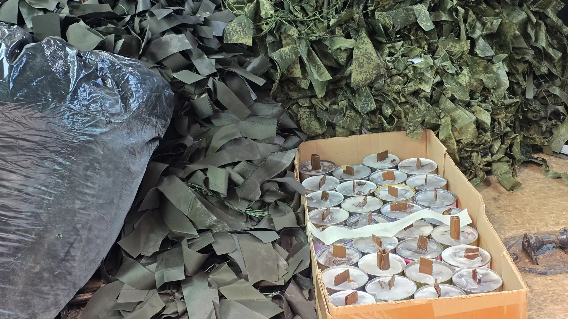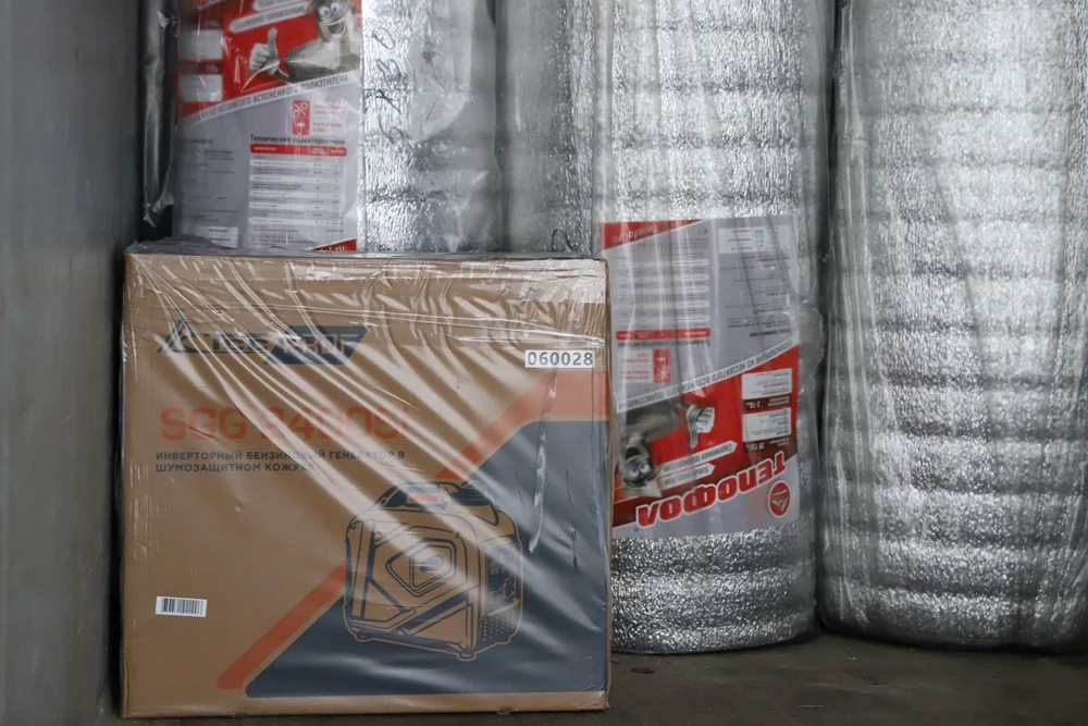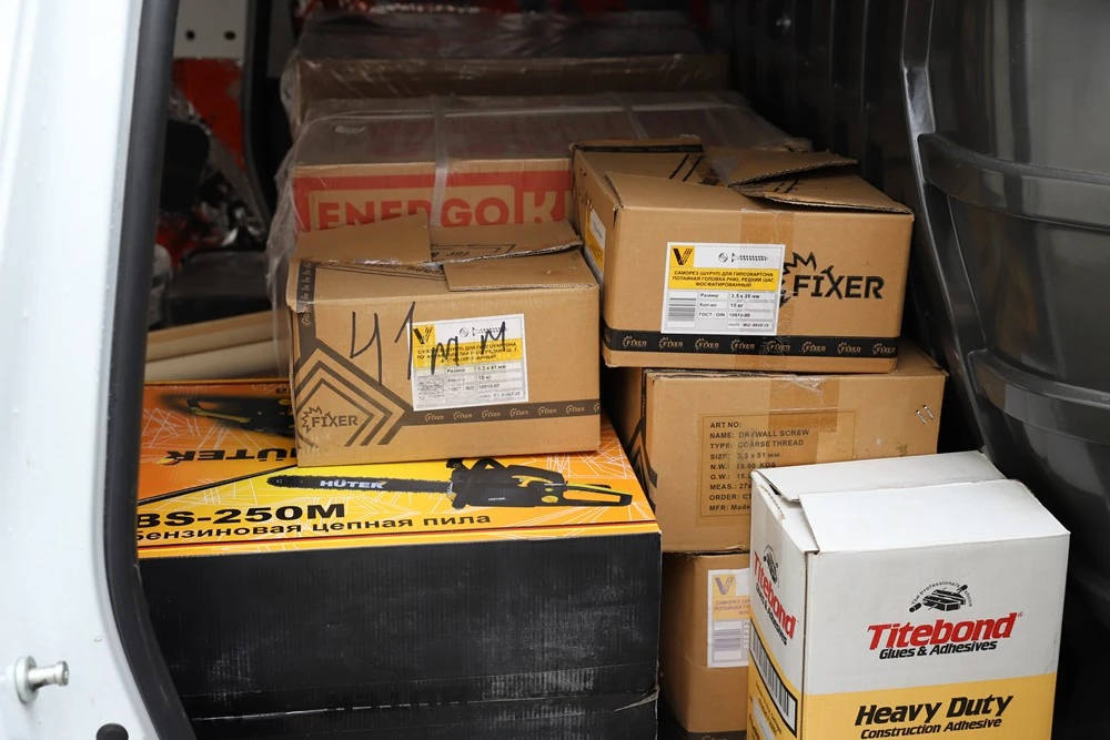 В составе груза − бензогенератор, бензопилы, автомобильный аккумулятор, коллиматорные прицелы, лопаты, утеплитель, маскировочные сети, средства гигиены, продукты и питьевая вода, медикаменты, перевязочные средства и жгуты.