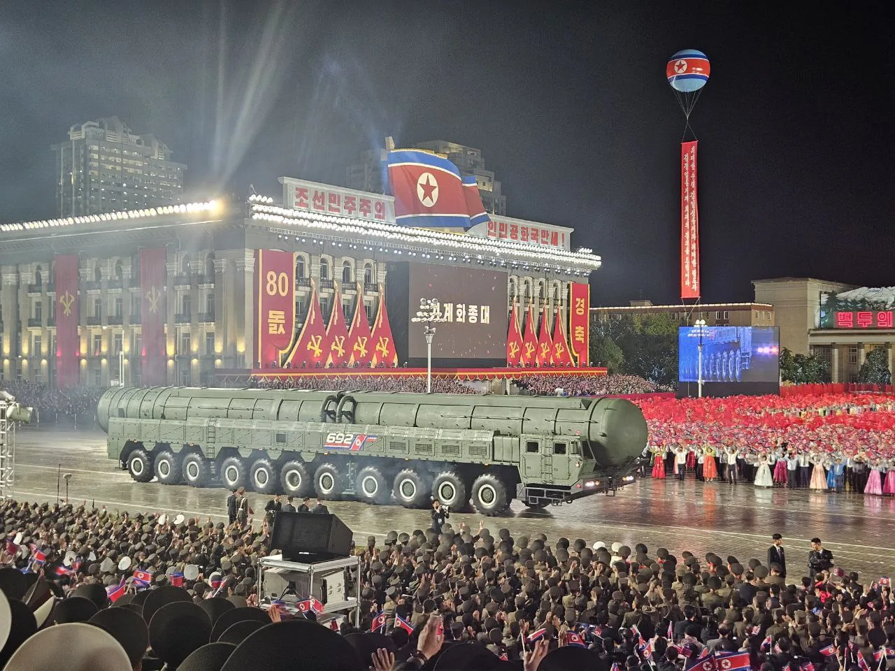 В честь 80-летия основания Трудовой партии Кореи в Пхеньяне прошел большой военный парад.