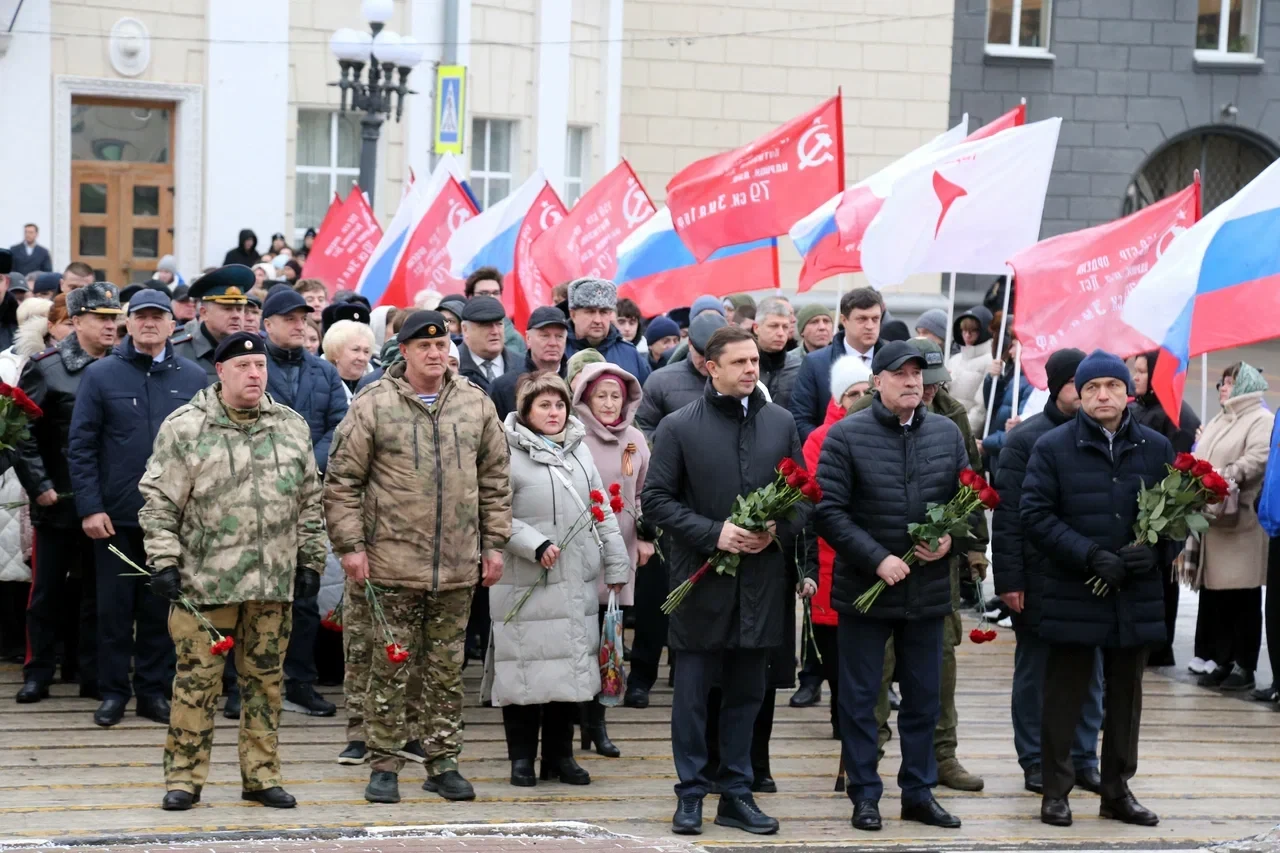 Цветы к стеле «Орел – город воинской славы», к бюстам героев-разведчиков Ивана Санько и Василия Образцова, Героев России Алексея Скворцова и Александра Рязанцева на бульваре Победы возложил Губернатор Андрей Клычков.