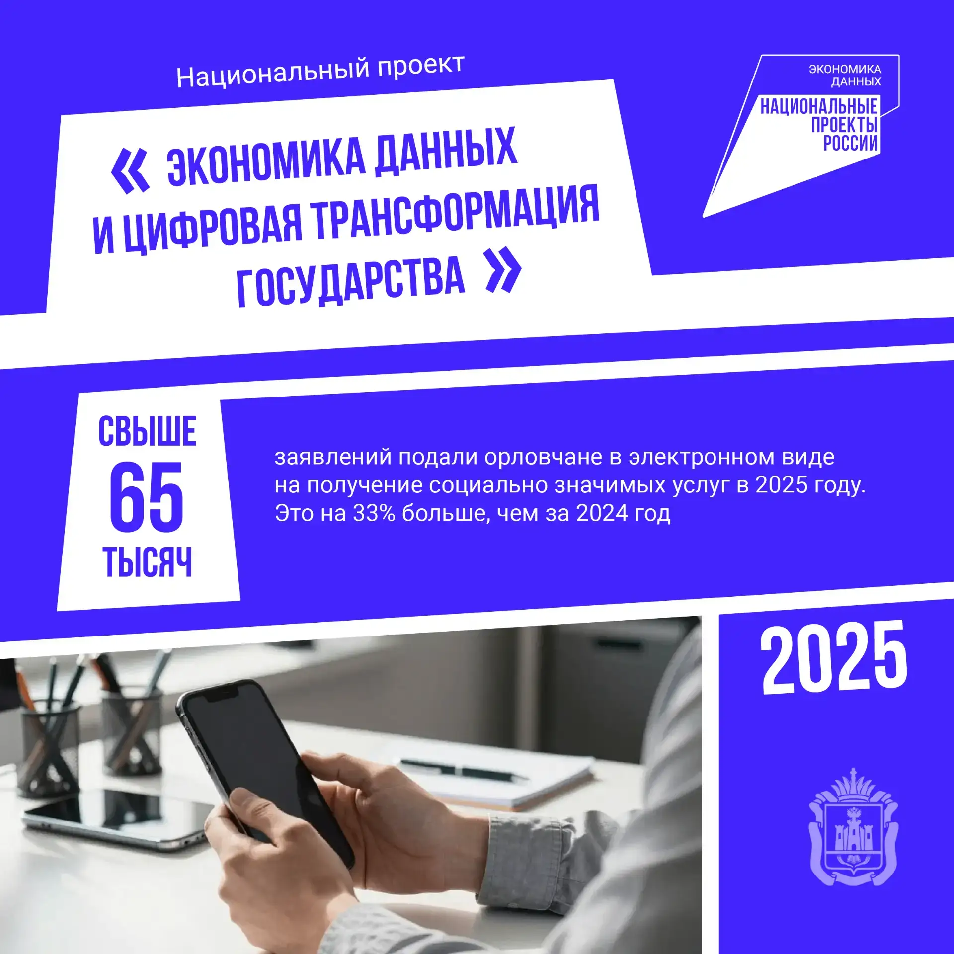 В прошлом году орловчане подали 65 123 «цифровых» заявления – на 33% больше, чем в 2024 году.