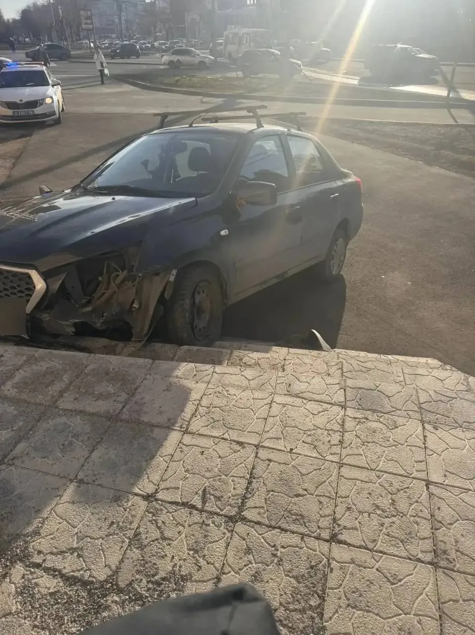 На улице Ленинской «Датсун» после столкновения с «Тойотой» влетел в лестницу административного здания. Пострадавших нет, обстоятельства выясняются.