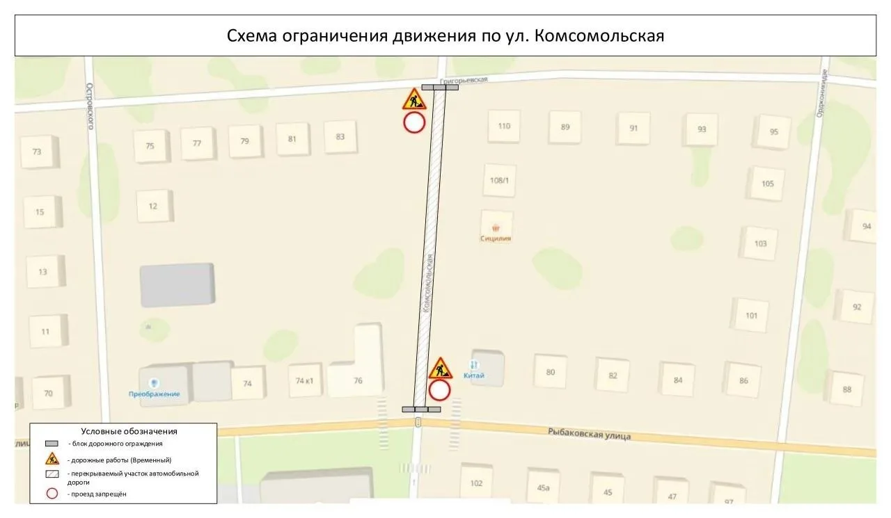 8 апреля с 10:00 до 23:00 9 апреля из-за аварийно-восстановительных работ ограничат движение на улице Комсомольской от ул. Рыбаковской до ул. Григорьевской. Работы проводит «Росводоканал Оренбург».