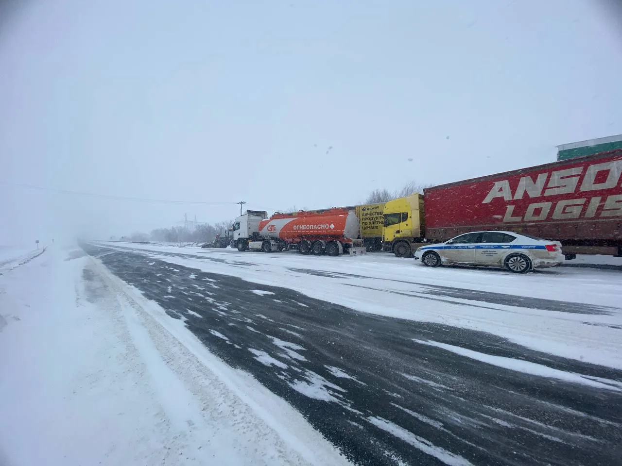 Участок трассы Оренбург-Орск от поселка Краснощеково до Новоникольска из-за штормового ветра и метели будет перекрыт до утра 15 января.