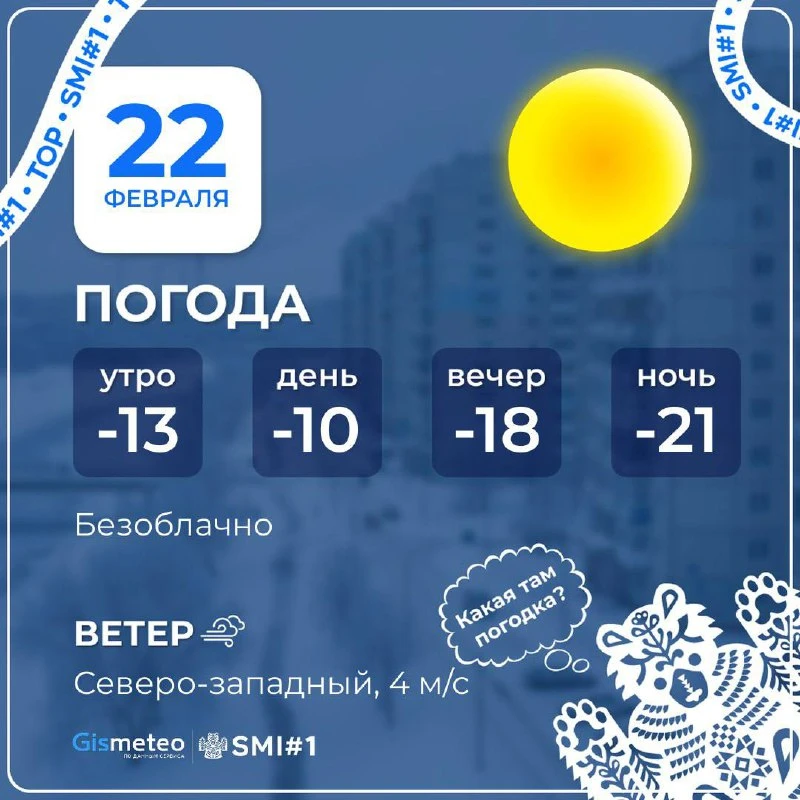 Установится ясная и морозная погода. Без осадков. К ночи температура опустится до -21 градуса. Одевайтесь теплее. 🥰