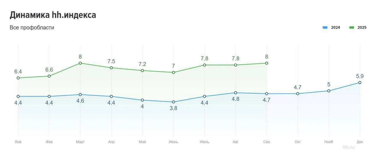 При этом рынок труда становится все более напряженным: на одну вакансию приходится восемь резюме.