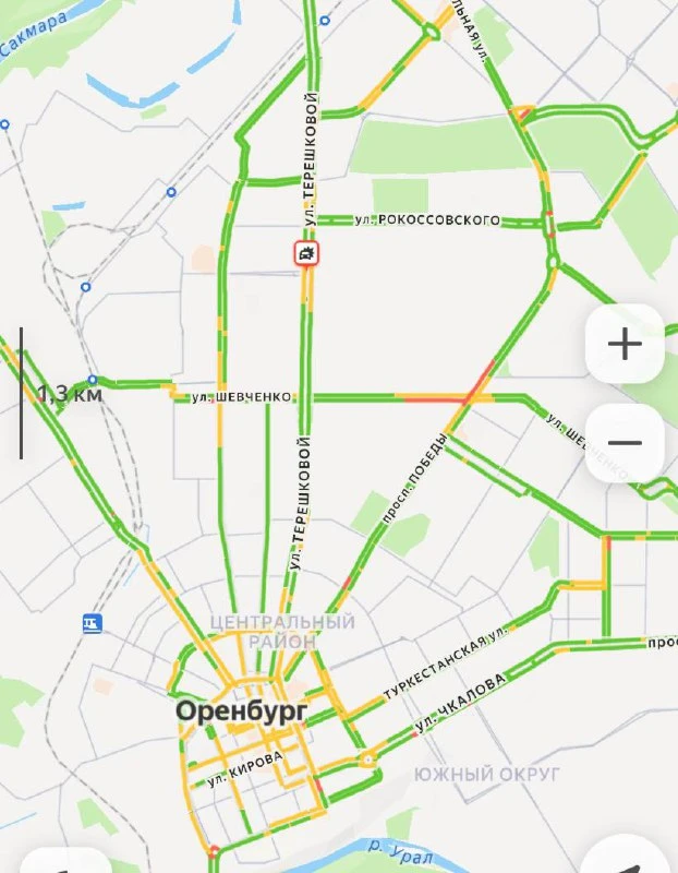 🚗 Движение затруднено на улице Орской и Шевченко. ДТП на улице Терешковой.