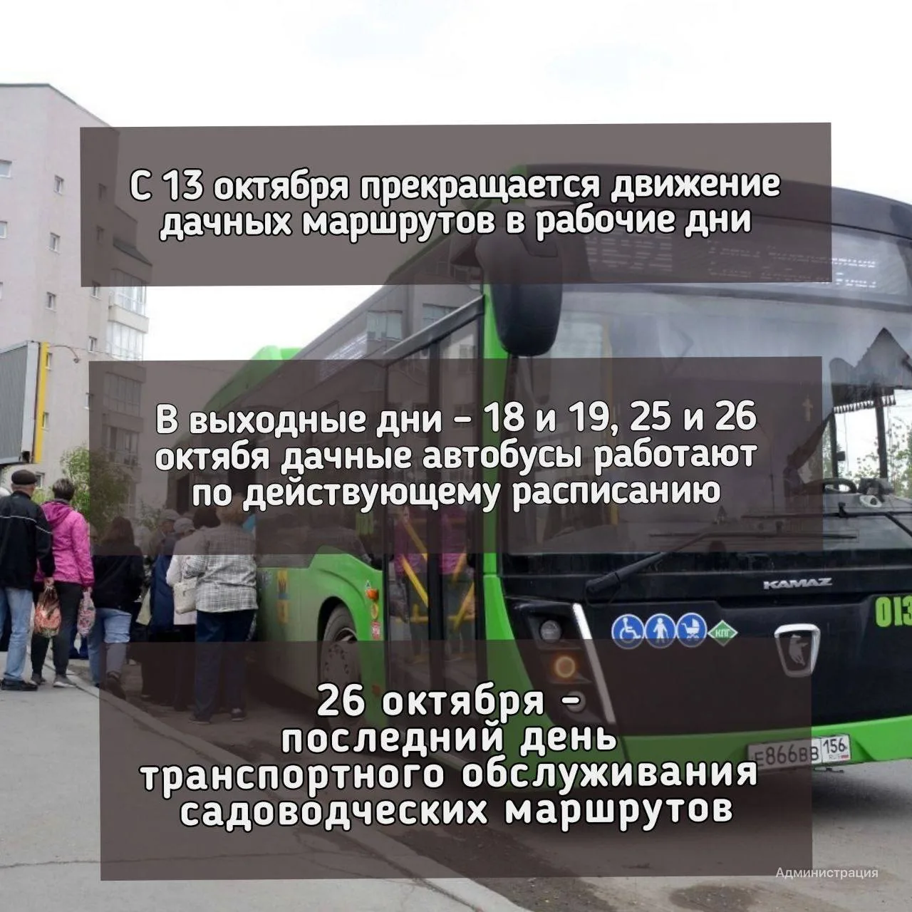С 13 октября дачные автобусы в будни больше не курсируют, а последнее воскресенье, когда можно будет уехать на участки, — 26 октября. После этой даты движение сезонных маршрутов официально прекратится до весны.