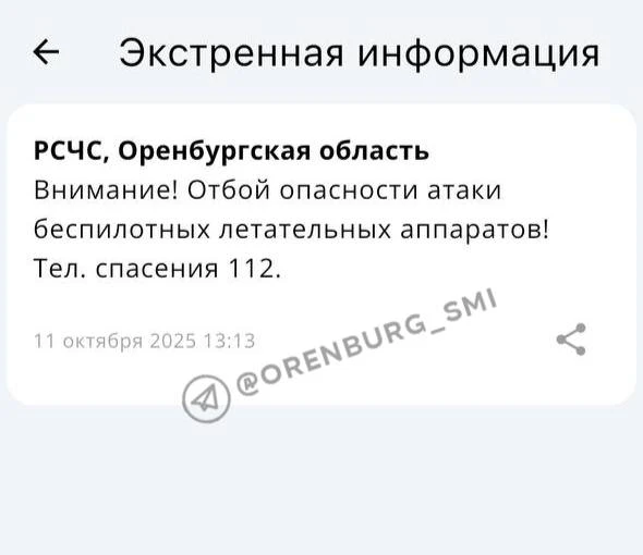 ❗️❗️❗️❗️Опасность атаки БПЛА объявили в Оренбуржье