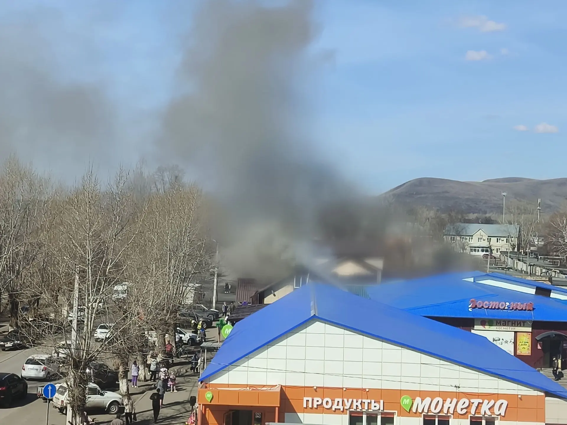 Сильный пожар в Кувандыке горит магазин