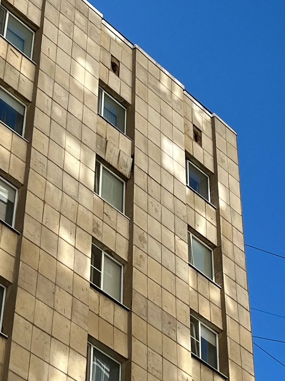 На предпоследнем этаже общежития 8 ОГАУ, что на улице Челюскинцев, того и гляди отвалится облицовка, которая может привести к порче чужого имущества или, что ещё хуже, к причинению вреда здоровью.