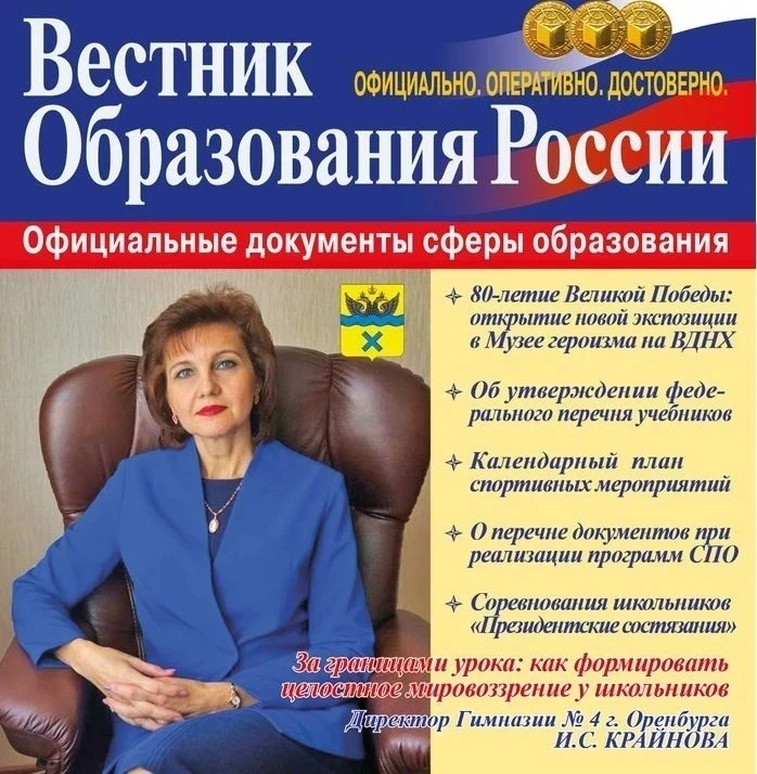 Директор гимназии №4 из Оренбурга получила золотой знак журнала «Вестник образования»