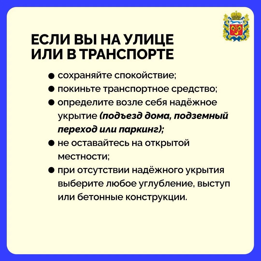 Памятка: что делать при объявлении ракетной опасности и при звуке включенной сирены.